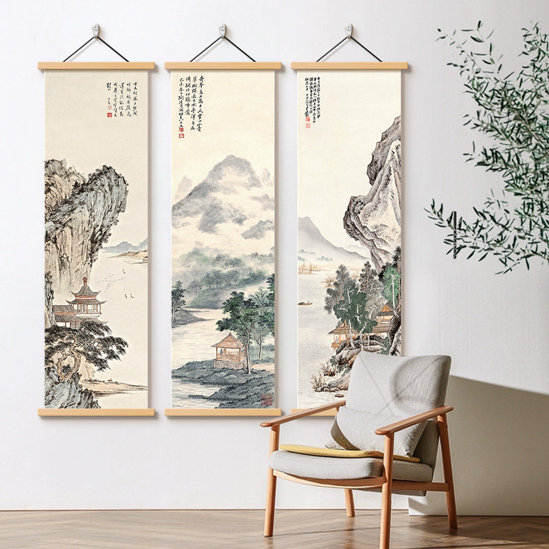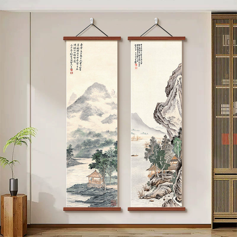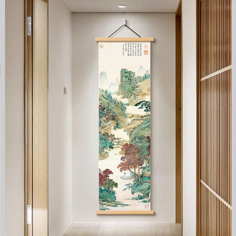 📚 新中式枫溪垂钓玄关装饰画古韵走廊过道壁画书房茶室名家国画挂画