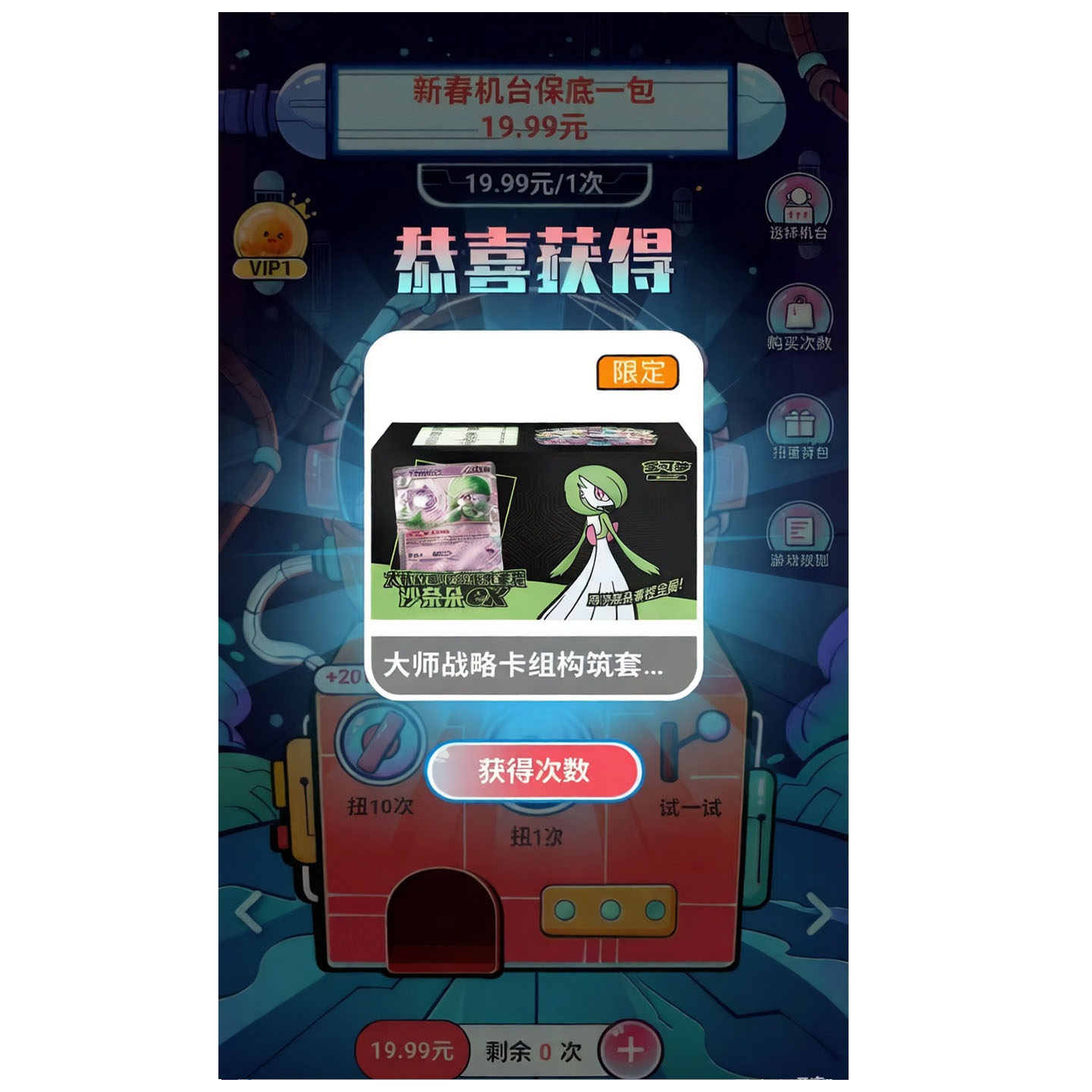 📚 保底机台 简中宝可梦卡牌PTCG扭蛋机 朱紫 剑盾 151惊 宝石包