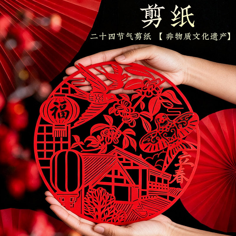 📚 非遗特色手工剪纸二十四节气成品窗花中国传统文化送老外伴手礼