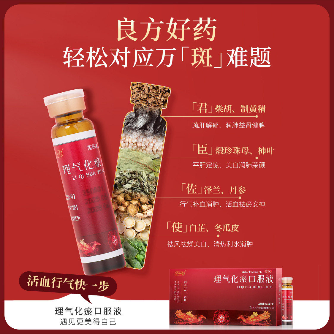 📚 御本堂 理气化瘀口服液12支/盒消斑活血行气改善气滞血瘀黄褐斑女