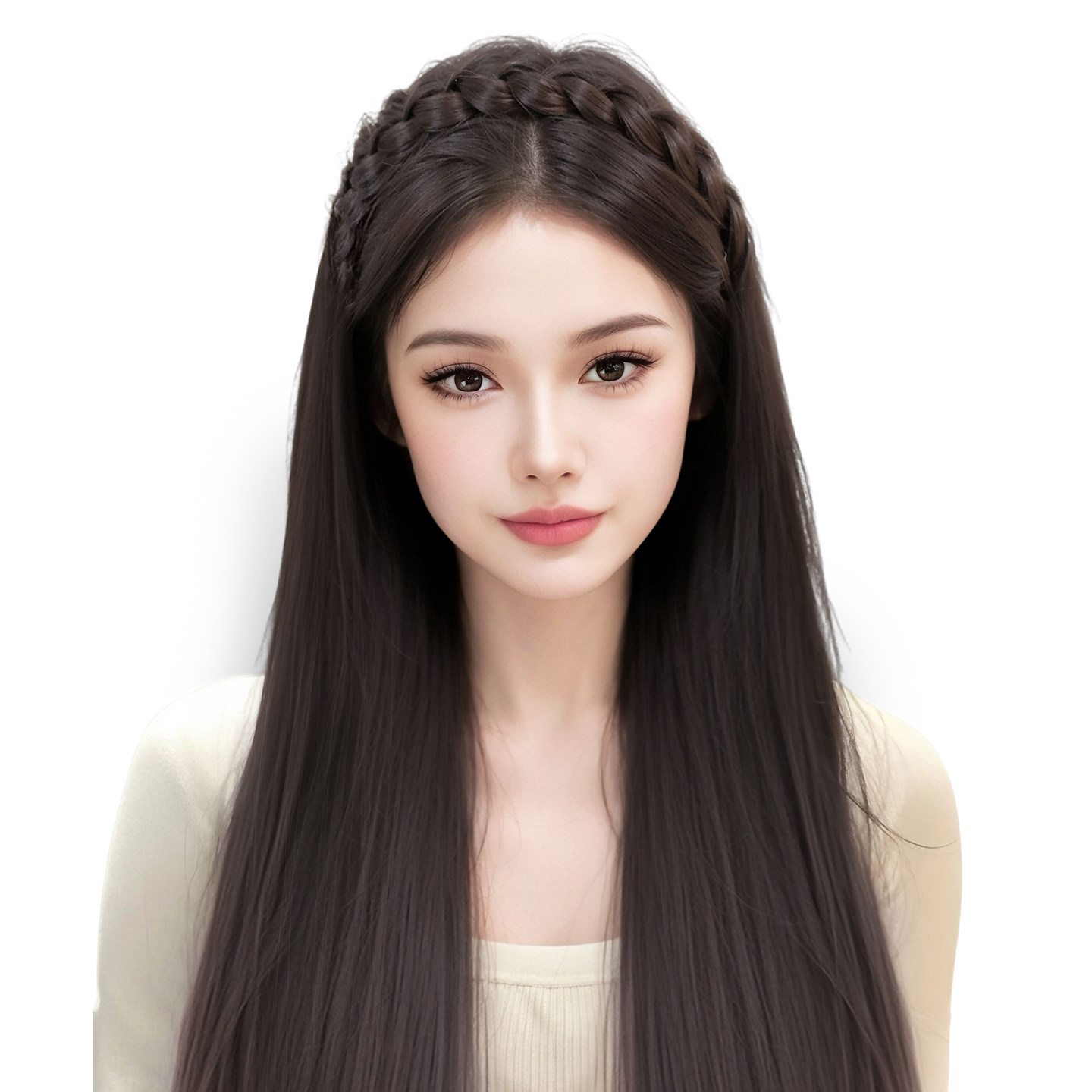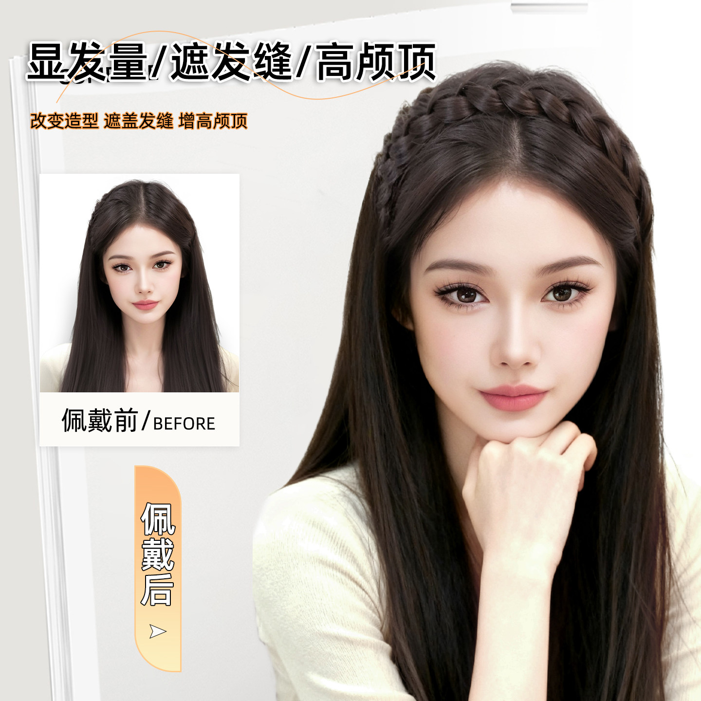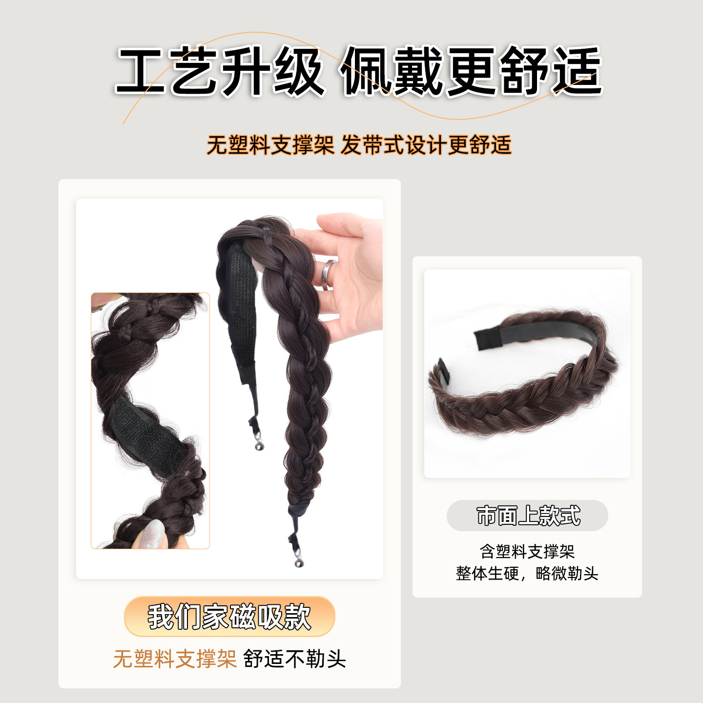 📚 磁吸式鱼骨辫发箍假发一体女麻花辫编发长辫子发饰发带高颅顶头饰