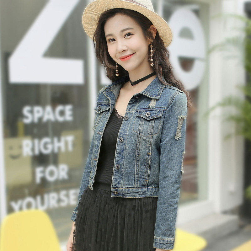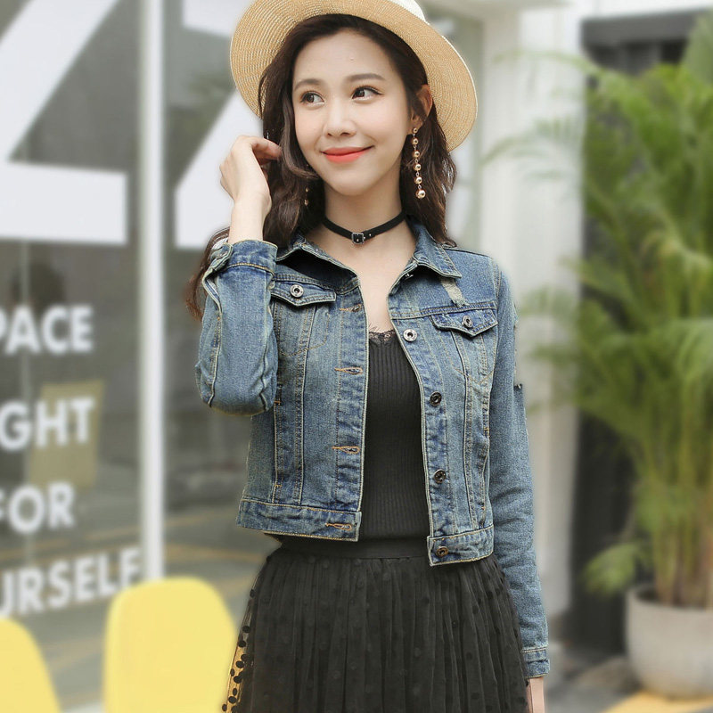 📚 牛仔外套女短款修身韩版潮显瘦复古长袖春秋牛仔服上衣大码破洞9