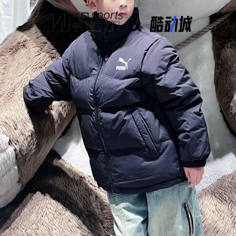 📚 Puma彪马黑色中大童简约立领防风保暖运动休闲羽绒服941360-01