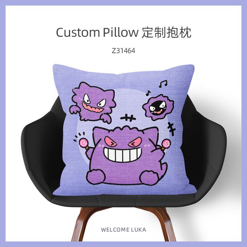 📚 紫色耿鬼抱枕宝梦靠枕搞怪靠垫大号沙发家用办公室定制小