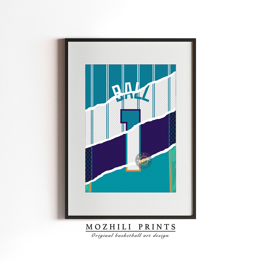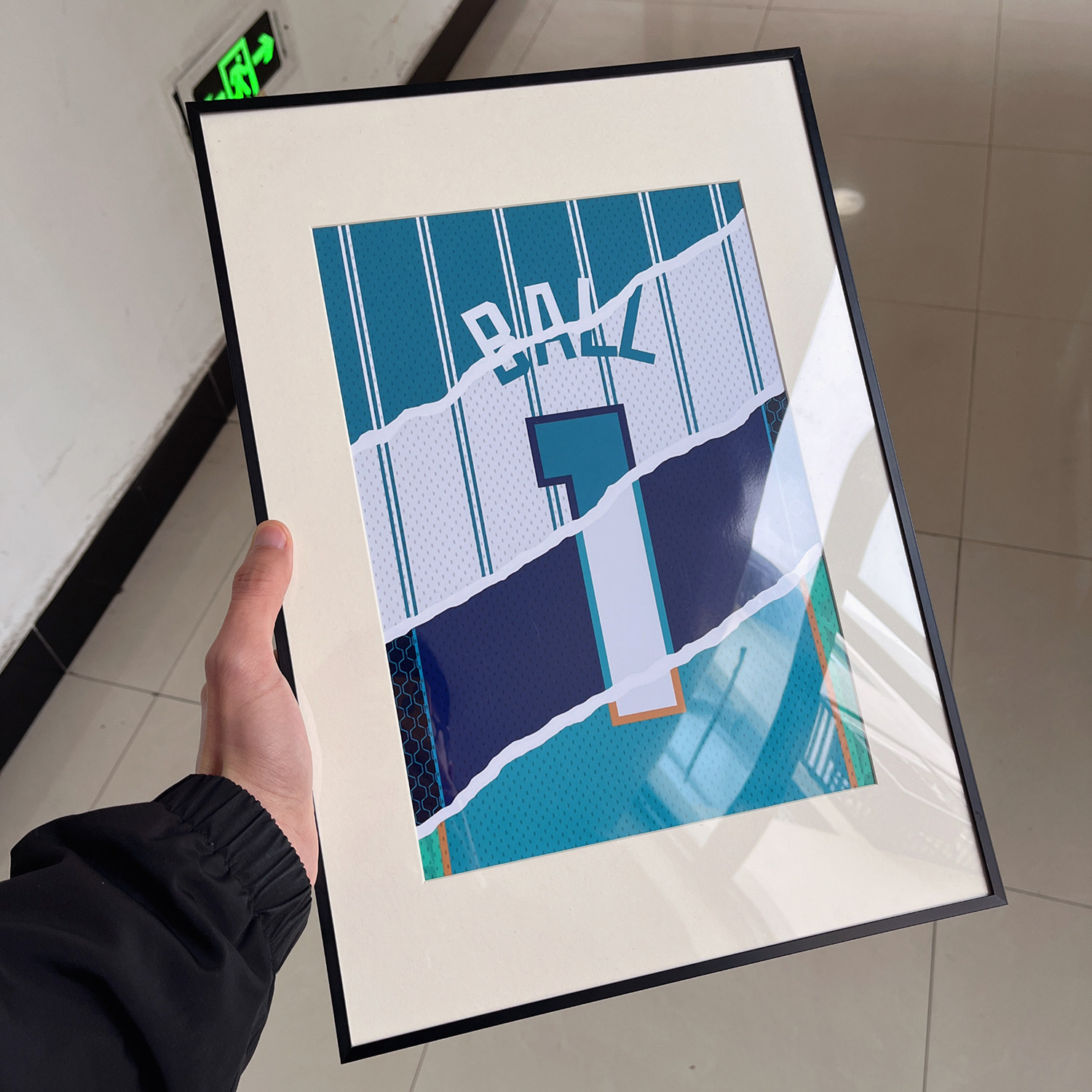 📚 拉梅洛鲍尔三球黄蜂队球衣拼接创意设计铝合金相框球迷周边礼物男