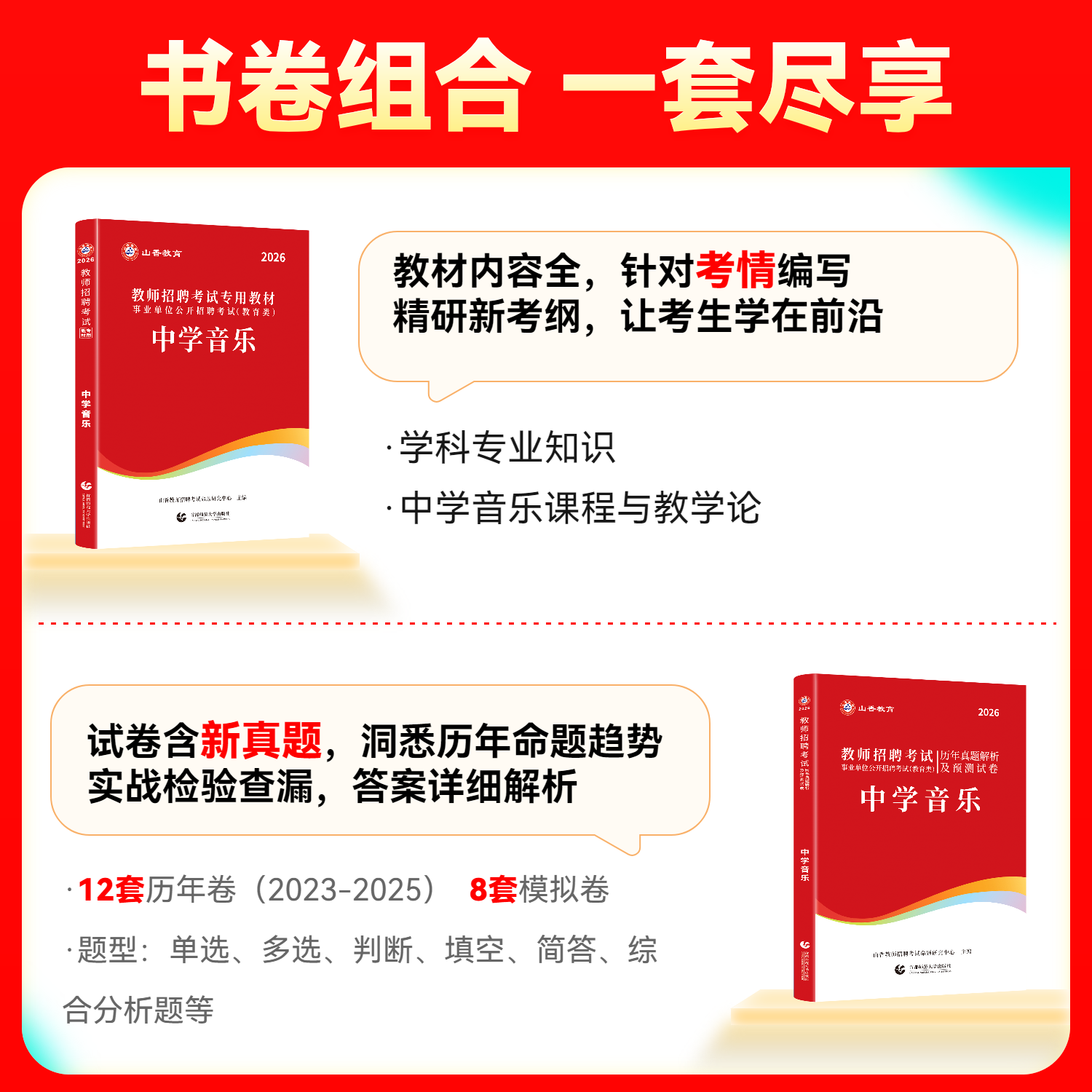 📚 Z2026教师国版招聘考试山香中学音乐用书专用教材中学音乐教材和历年真题卷学科专业知识教师招聘考试考编书教育理论基础试题老师
