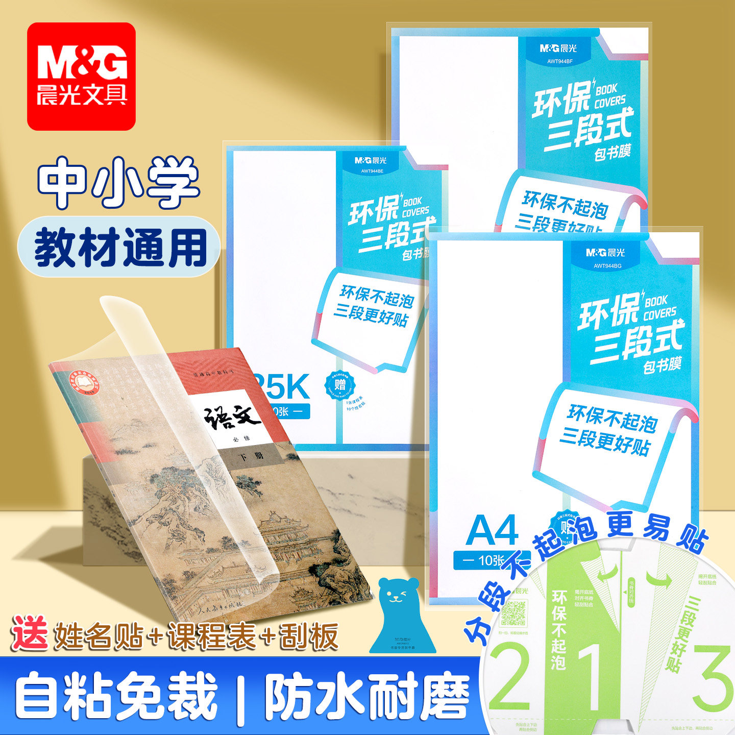 📚 晨光分段式书皮书套书皮纸包书皮贴纸自粘透明包书膜磨砂中小学生二年级包书纸全套16k下册a4书壳保护开学季