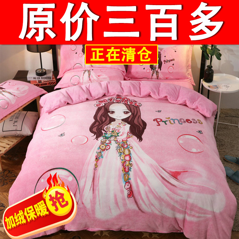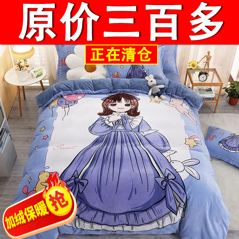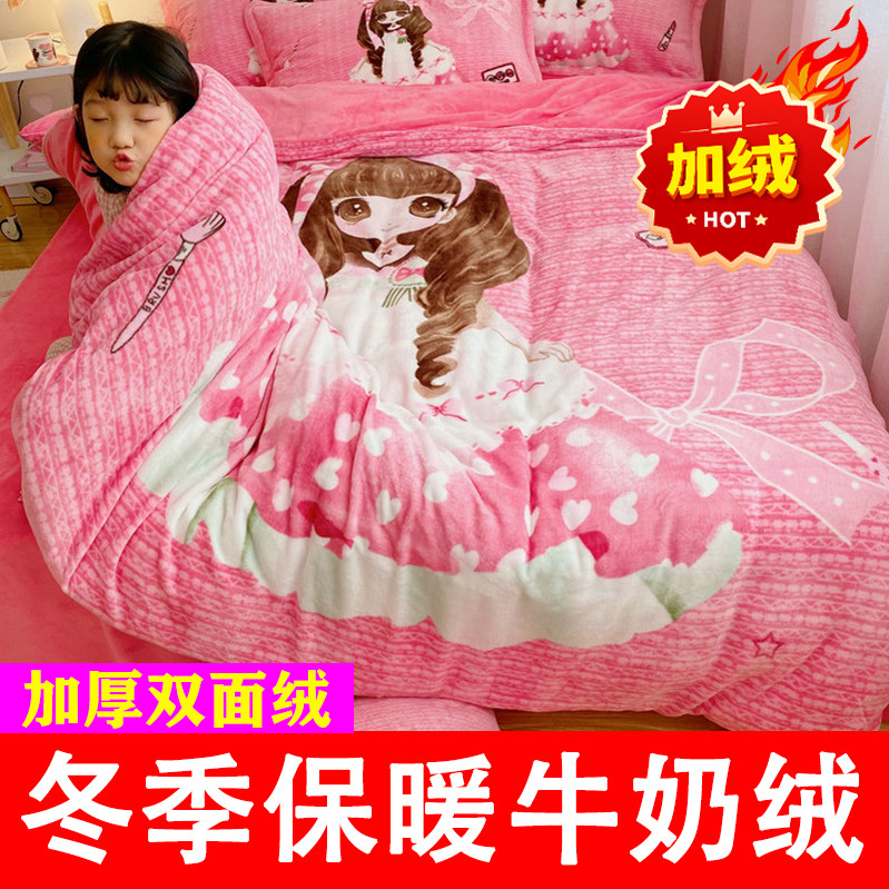 📚 牛奶绒卡通床上四件套法兰绒儿童三件套珊瑚绒男生女孩床单被套冬