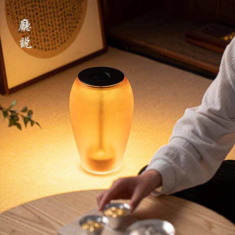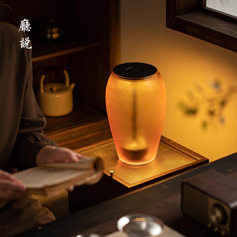 📚 厅说 月下琉璃灯茶具配件暖光氛围灯中式禅意茶道琉璃摆件装饰灯