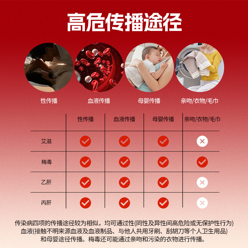📚 万测hiv检测纸艾滋梅毒乙肝丙肝居家筛查传染病四合一检测试剂卡