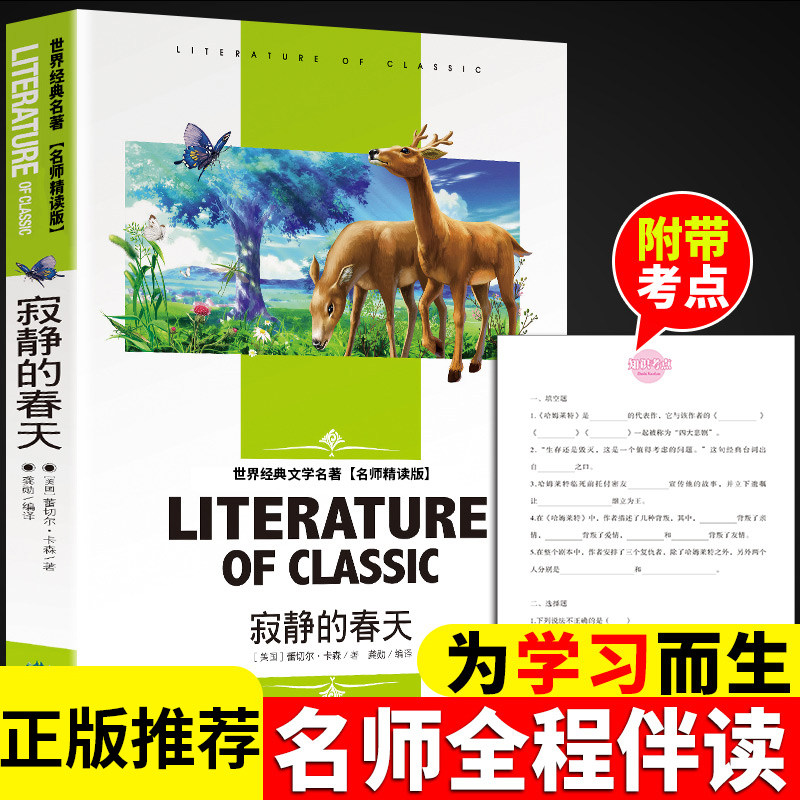 📚 寂静的春天 蕾切尔卡逊著必读正版中文版完整版无删减带注释 八年级上册初二课外书名著课外阅读书籍 世界经典文学名著小说