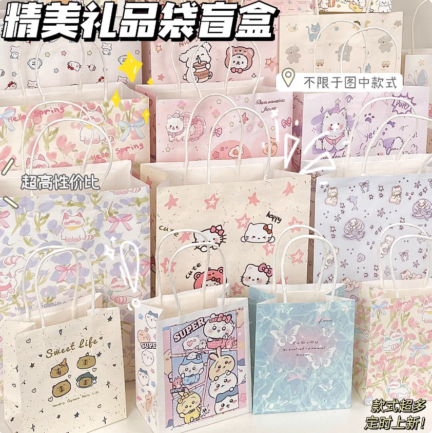 📚 热门款卡通手提袋盲盒大合集 ins高颜值超大容量纸袋精美礼品袋