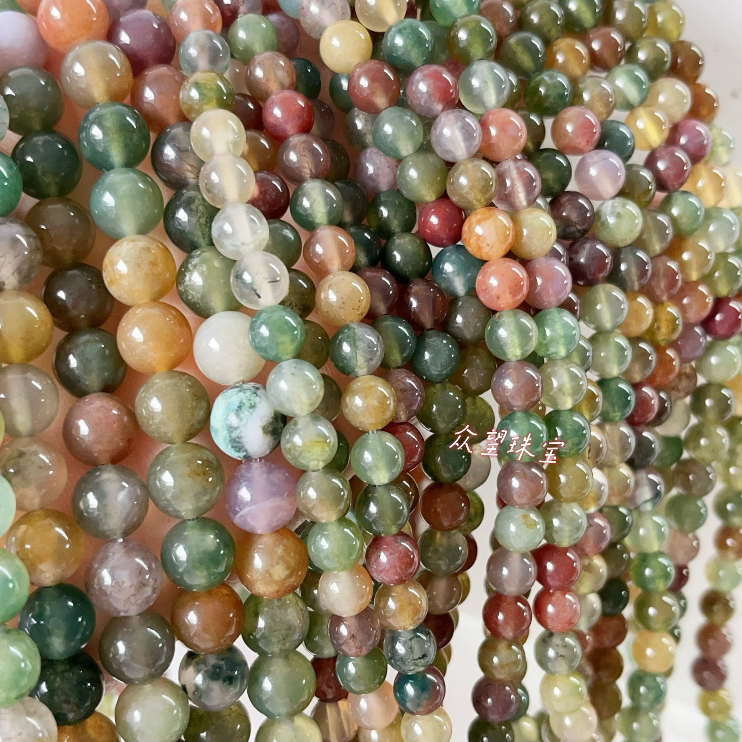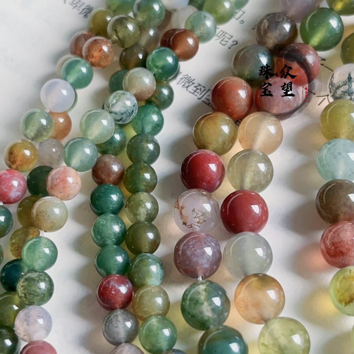 📚 天然七彩玉玛瑙 印度玛瑙散珠 水草玛瑙圆珠 阿拉善玛瑙串珠手链