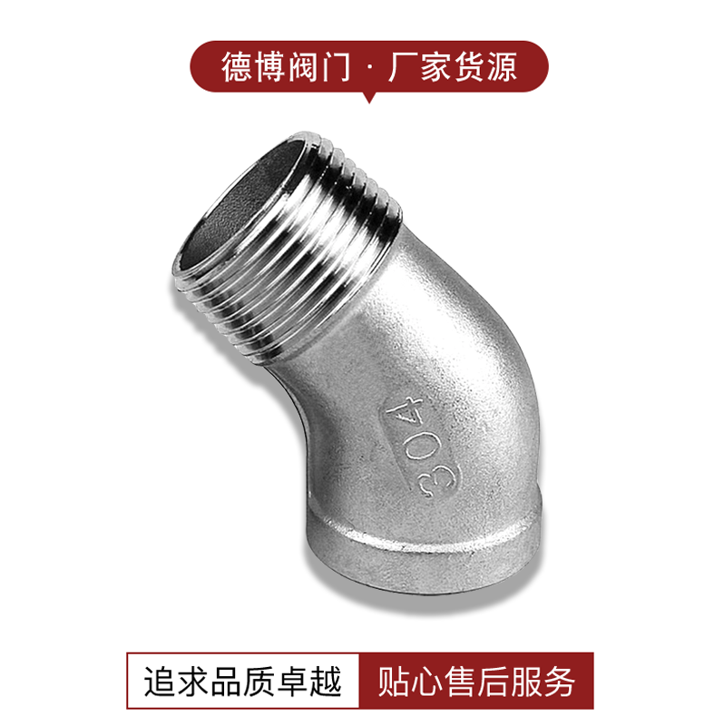 📚 304不锈钢45度内外丝弯头等径水管内外牙螺纹接头配件4分6分1寸