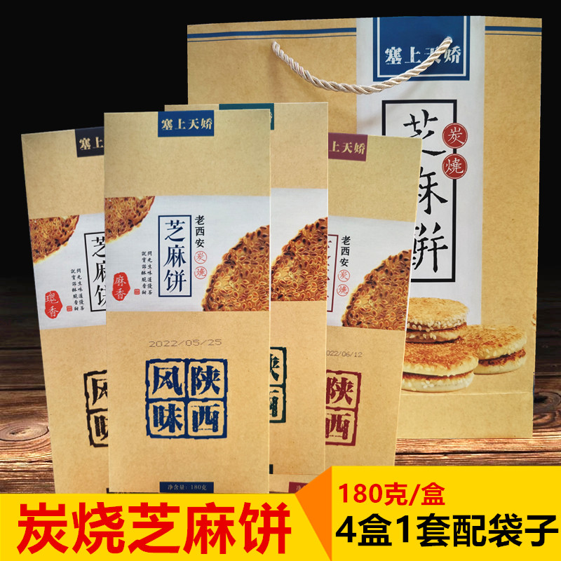 📚 炭烧芝麻饼礼盒陕西特产西安回民街特色小吃年货传统糕点塞上天娇