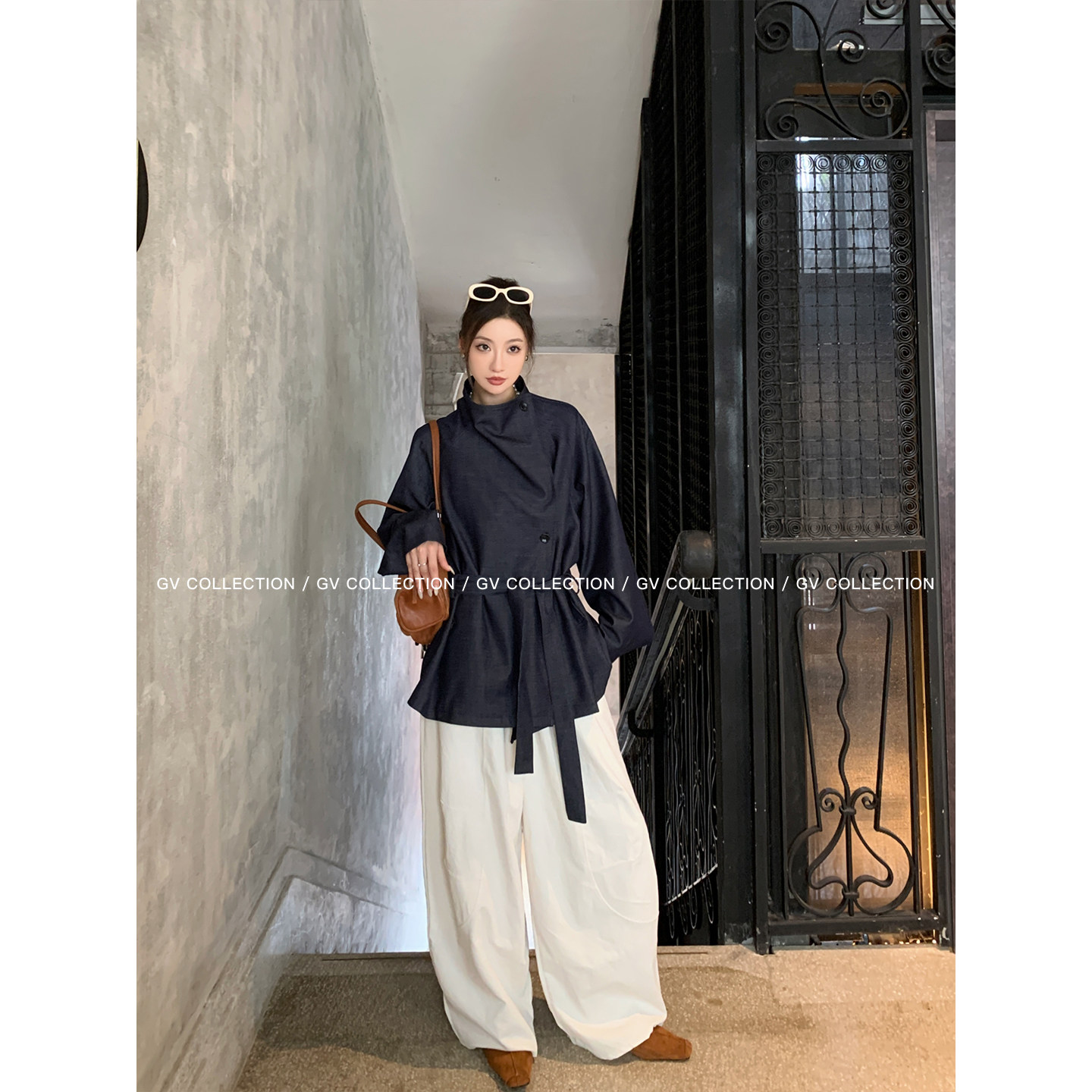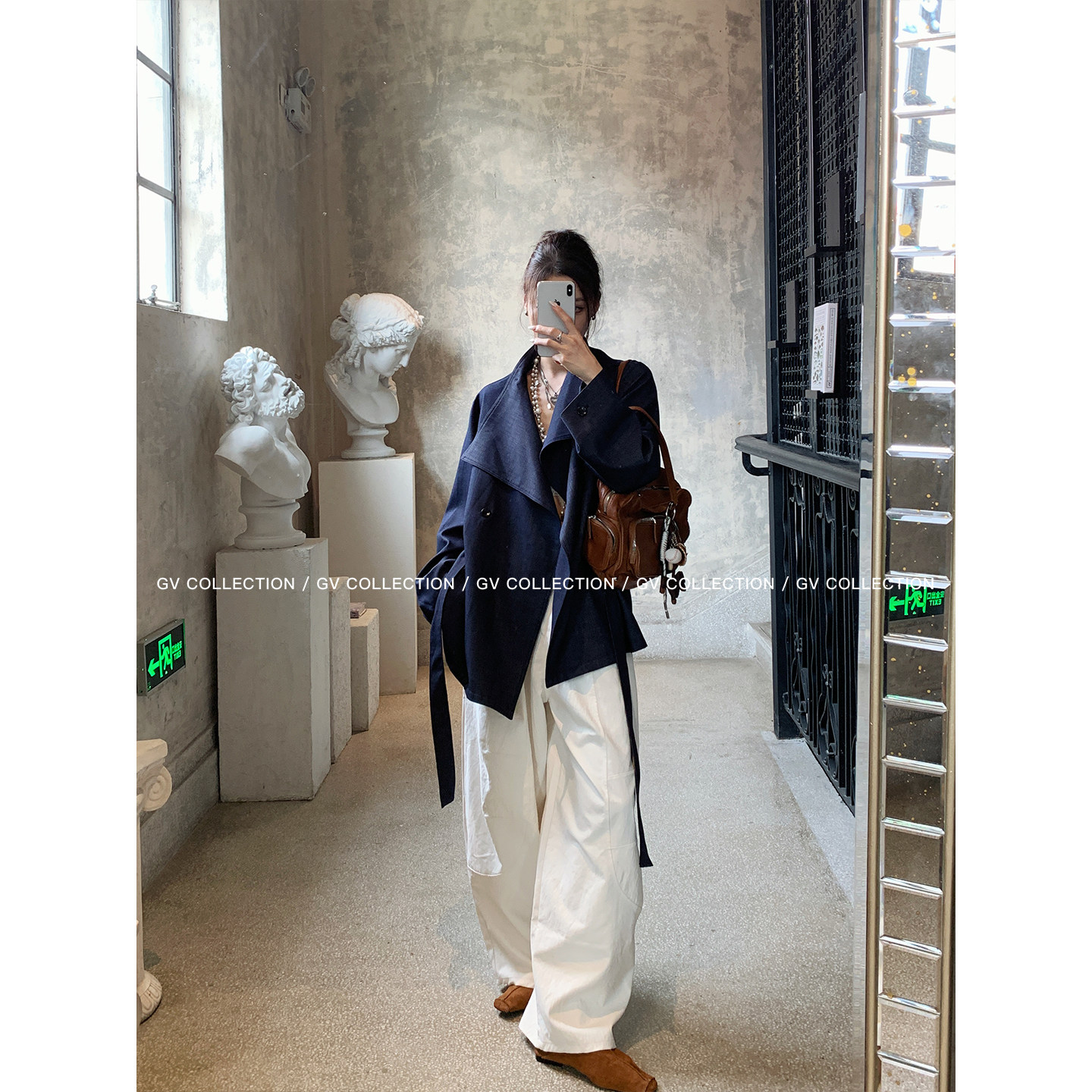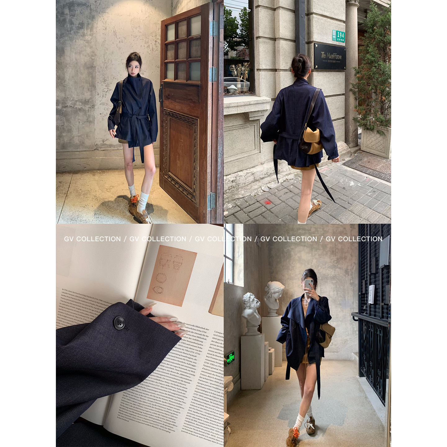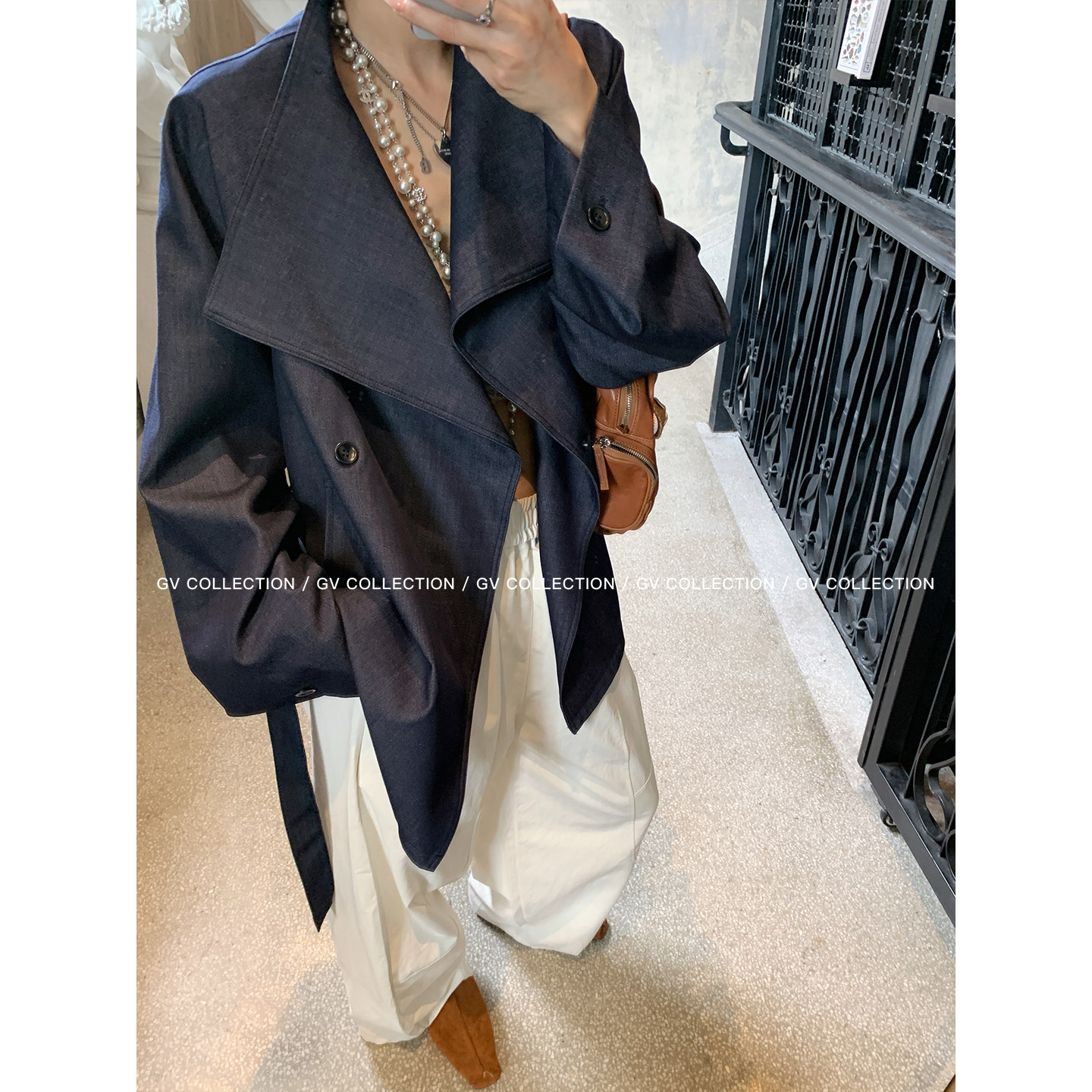 📚 GV大白哥 万年秀场 牛仔肌理翻领廓形风衣外套秋季新款上衣女百搭
