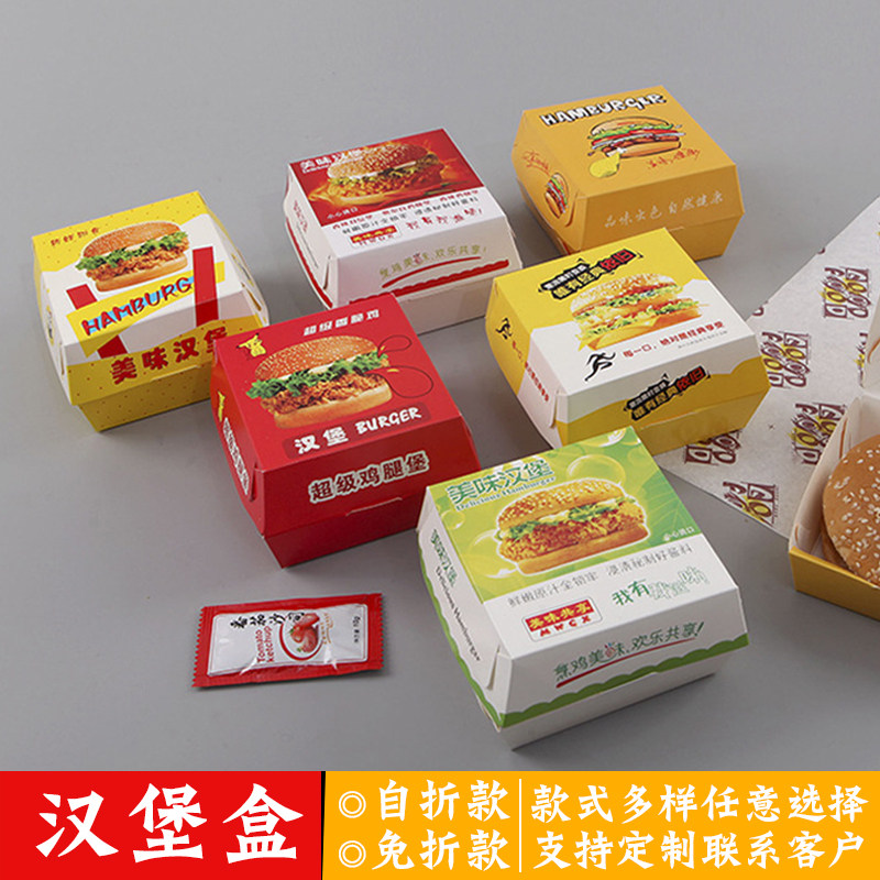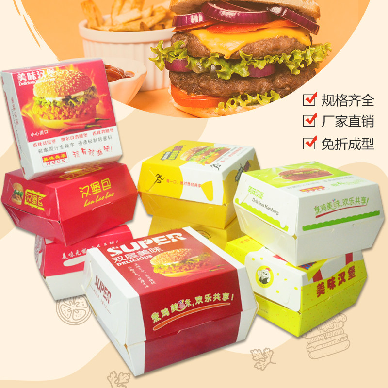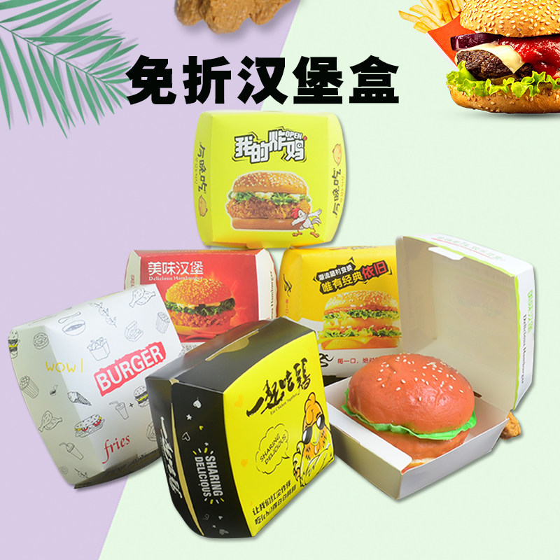 📚 一次性汉堡盒包装 折叠免折叠鸡腿堡鸡肉汉堡 鸡米花上校鸡块盒
