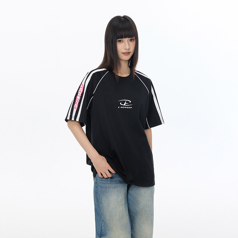📚 【Endweep官方店】条纹基础短袖T恤夏季撞色织带宽松潮牌情侣上衣