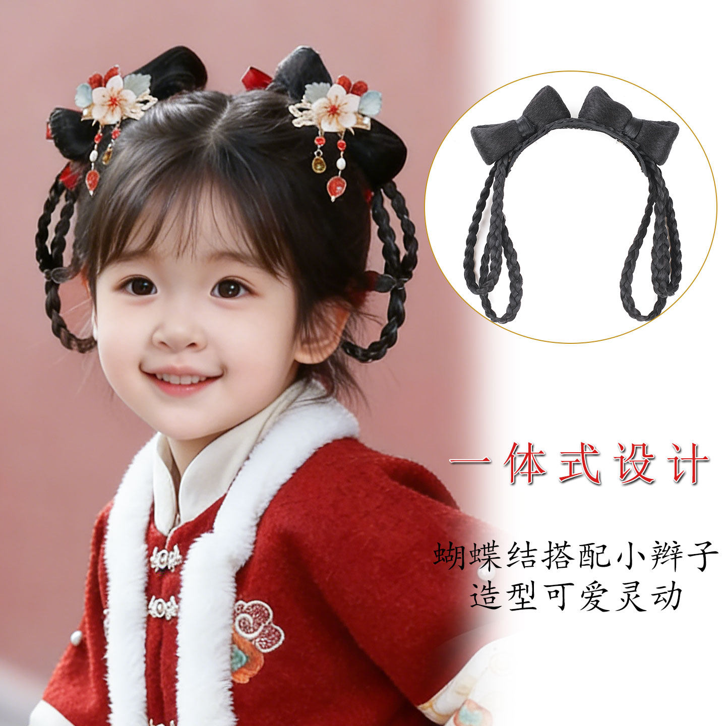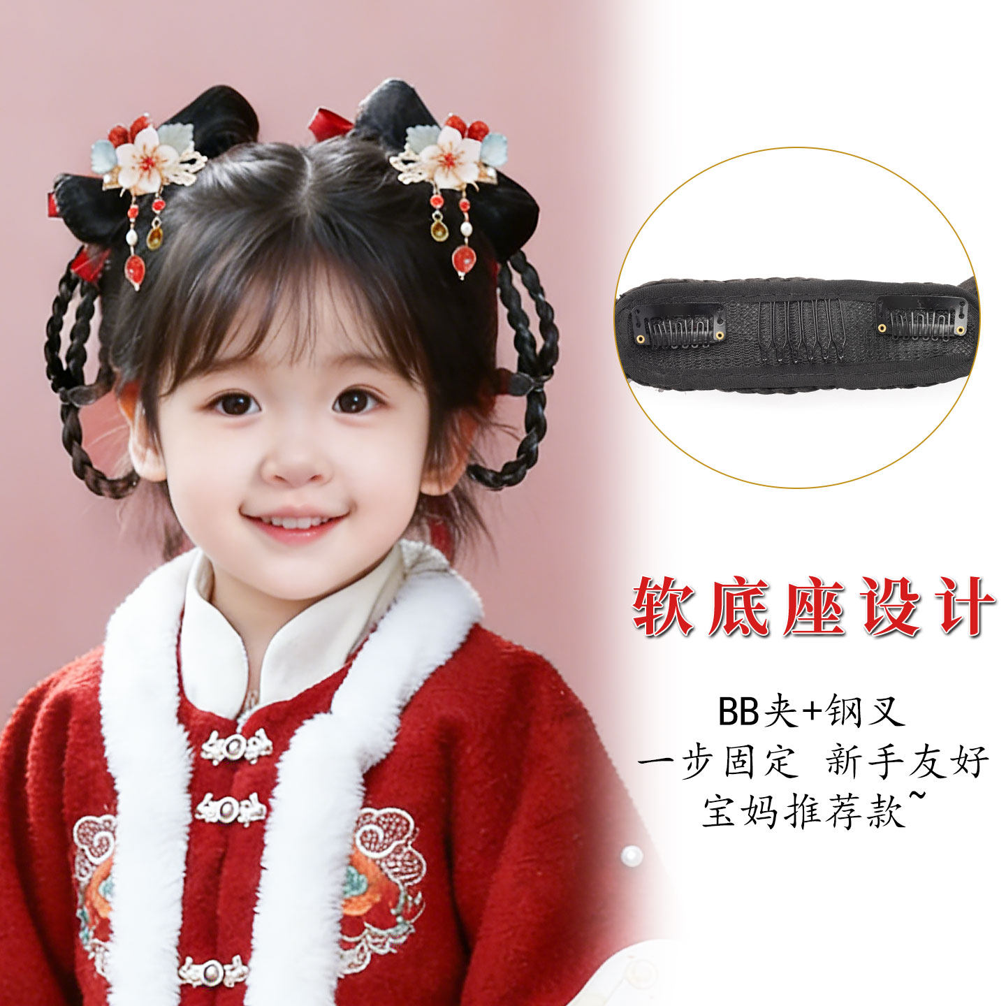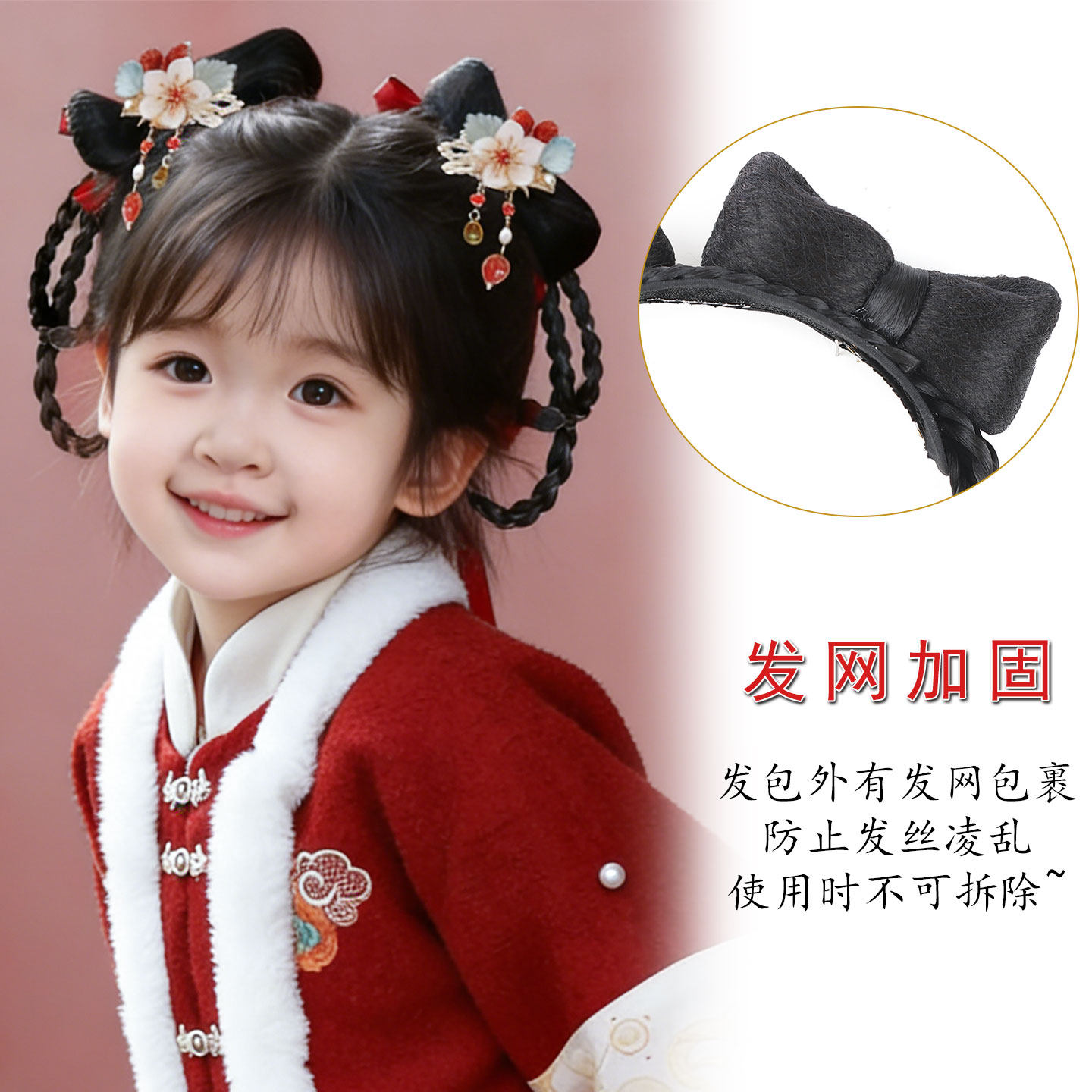 📚 儿童汉服头饰假发包古风一体式发箍女宝古装假发造型国风女童头饰