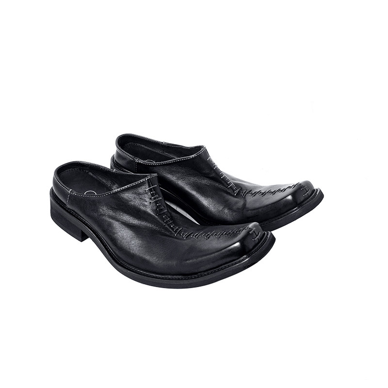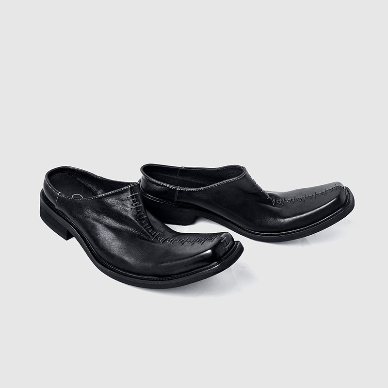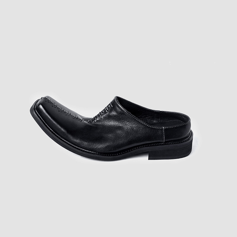 📚 幻象者原创设计感Cleanfit半拖皮鞋男高级小牛皮方头德比鞋翘头鞋
