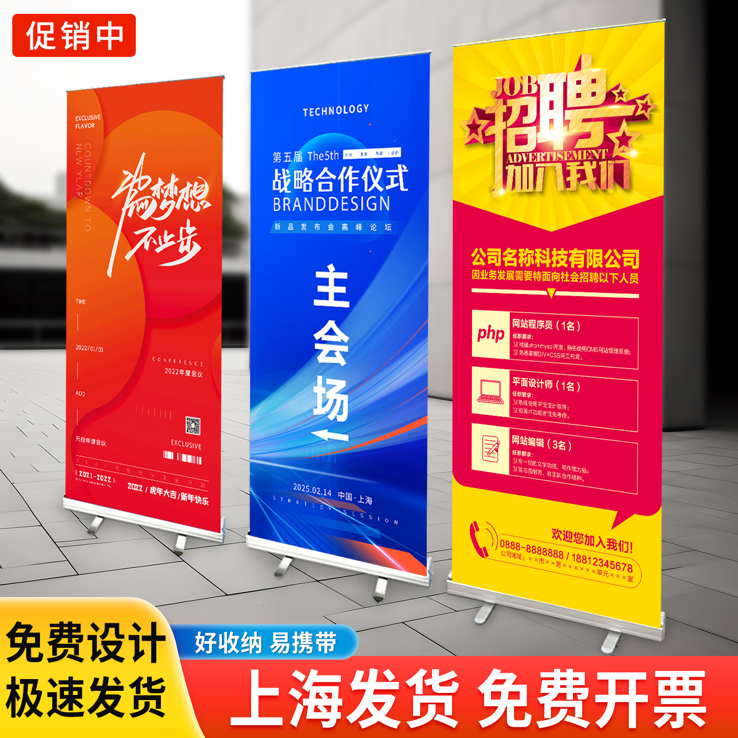 📚 易拉宝展示架招聘广告牌定制海报设计制作展示牌展架立式落地式架