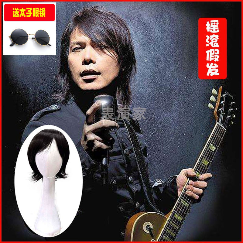 📚 日常表演摇滚假发伍佰cos假发迪吧夜店年会演出男短直发狼尾头套