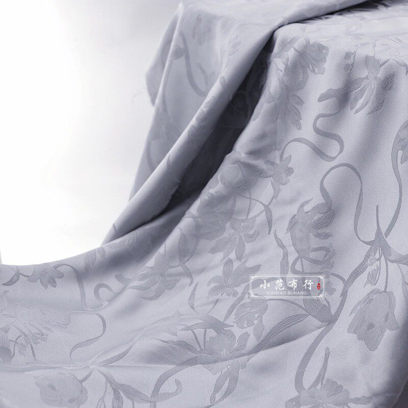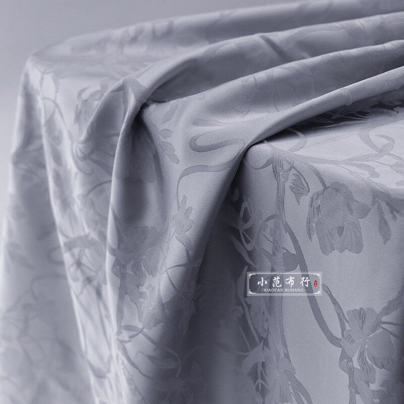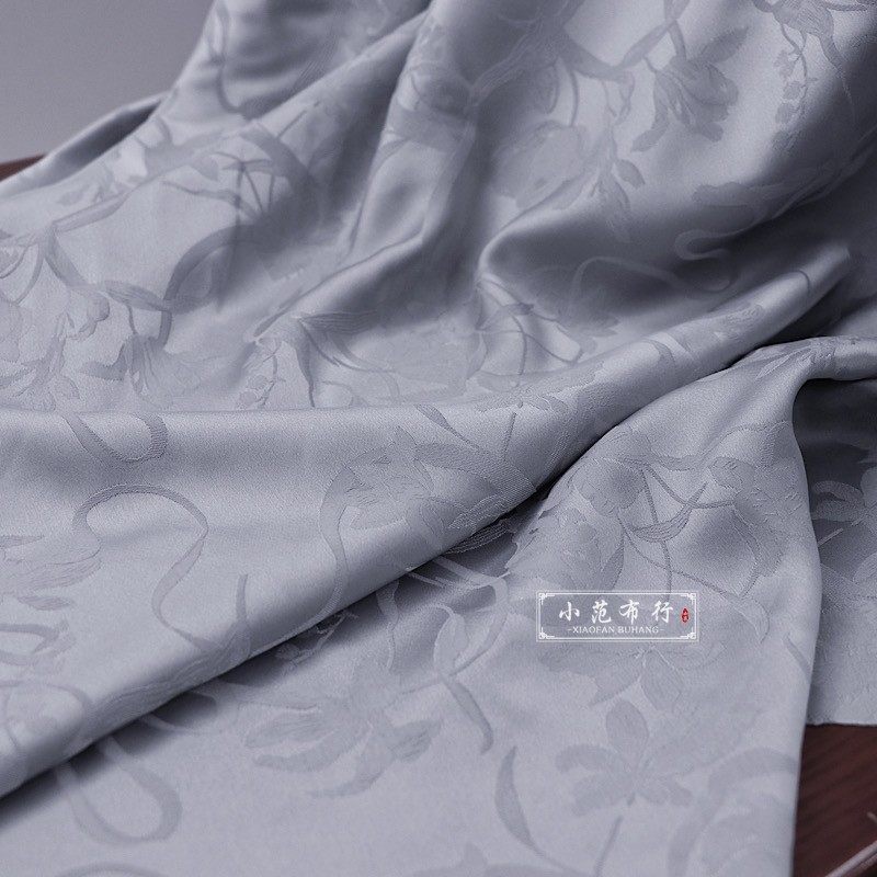 📚 灰色铃兰提花缎布料 柔软弹力光泽感旗袍连衣裙设计师服装面料