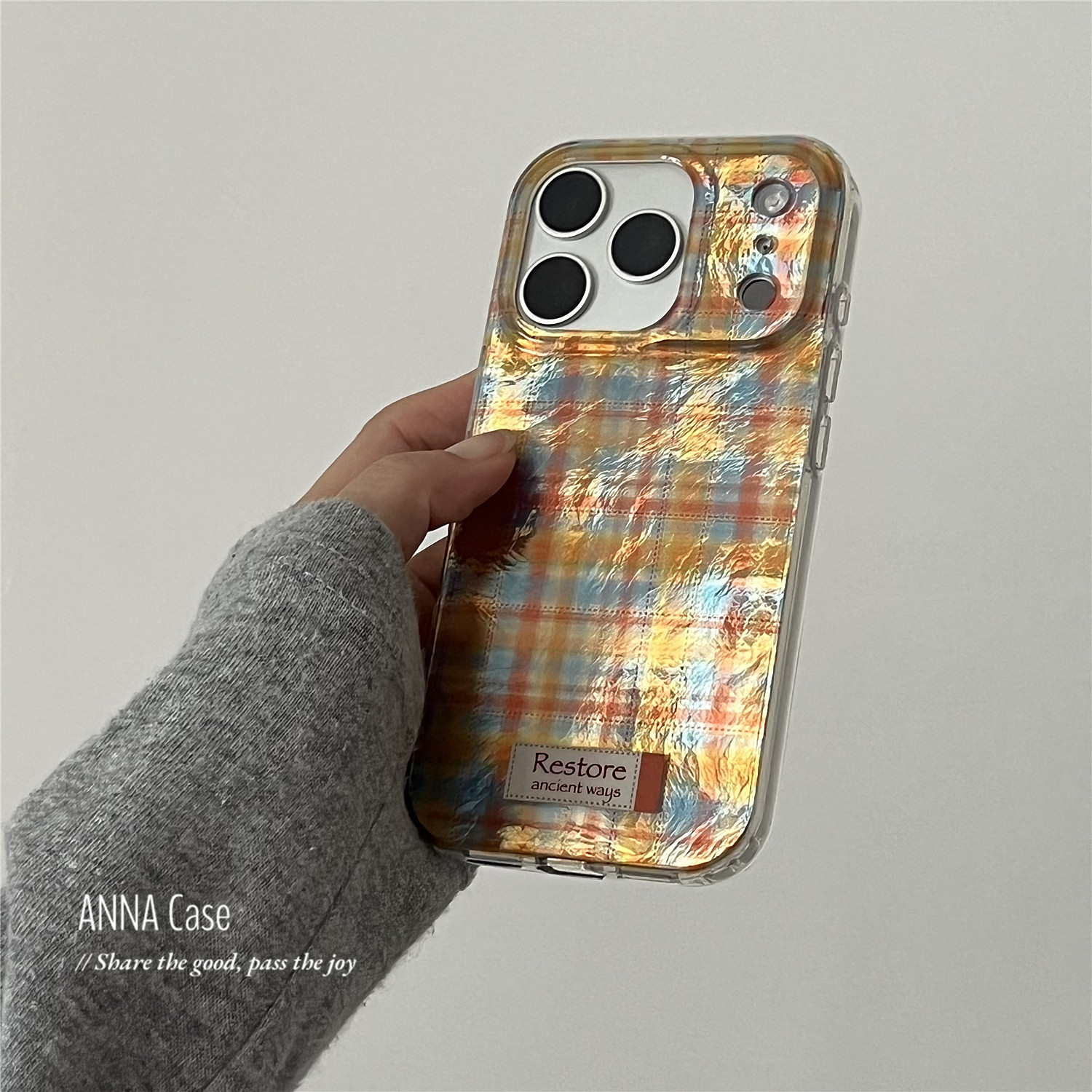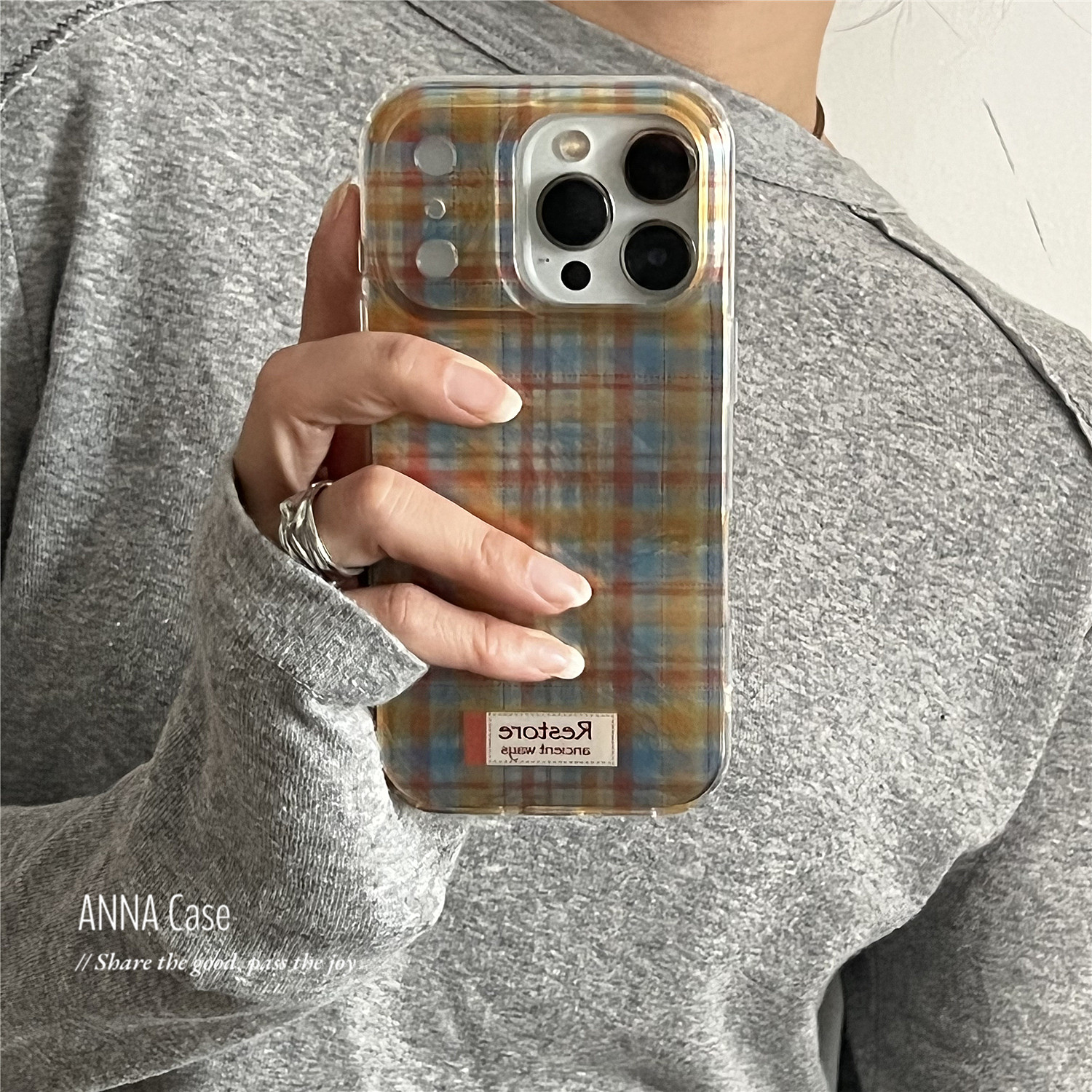 📚 ANNACASE秋冬复古黄蓝色格纹锡纸纹手机壳适用iphone17promax苹果17小众16promax新款15pro女款14防摔保护套