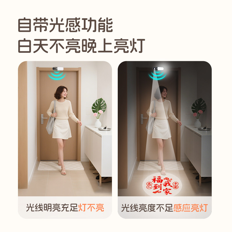 📚 充电高级入户门迎宾灯欢迎回家自动感应玄关进门门口免接线投影灯