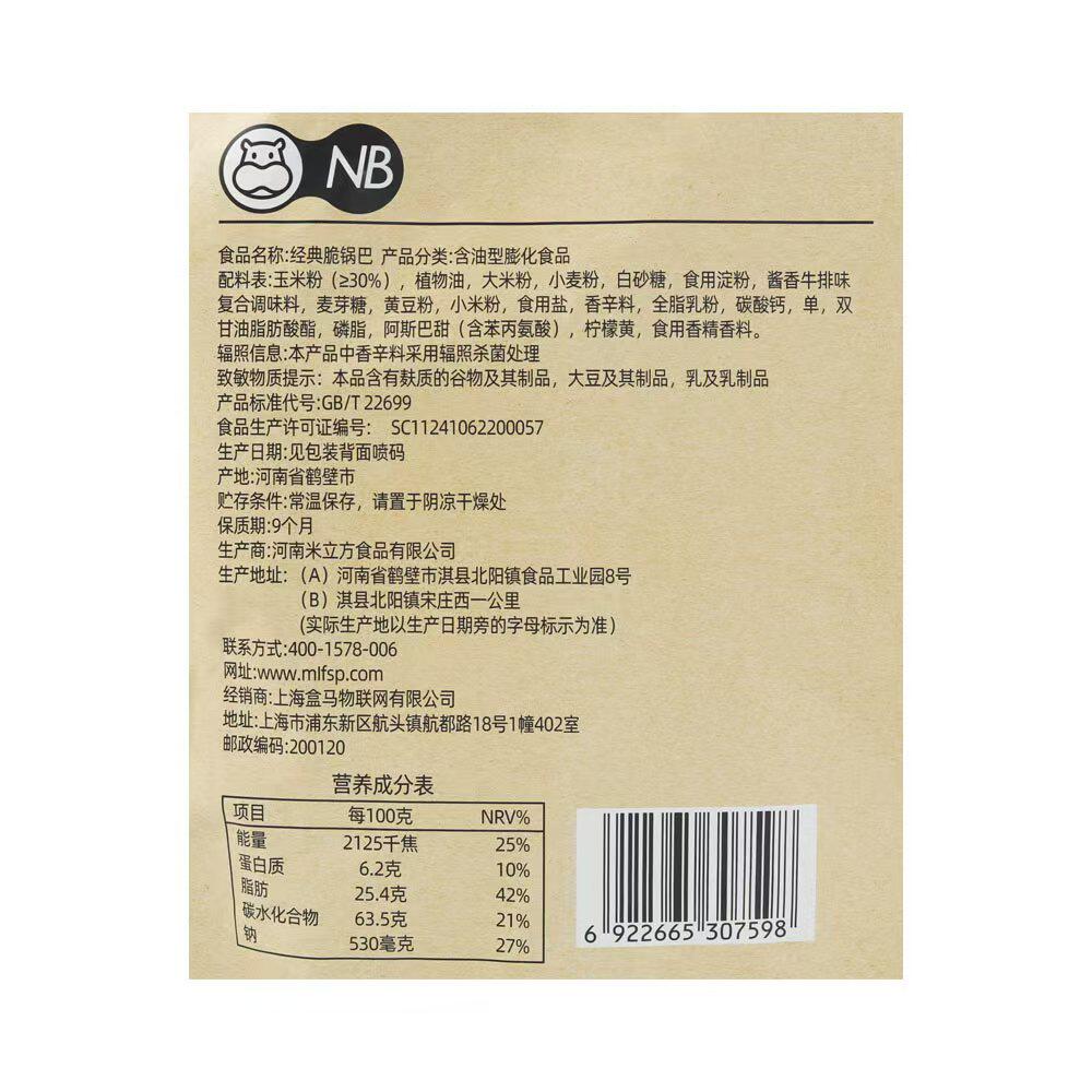 📚 盒马NB代购经典脆锅巴精选粗粮金黄美味210g袋装追剧聚会休闲零食