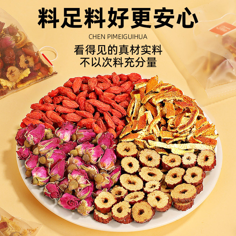 📚 陈皮玫瑰花茶大枣枸杞泡水气血不足养生茶疏肝解郁茶包官方旗舰店
