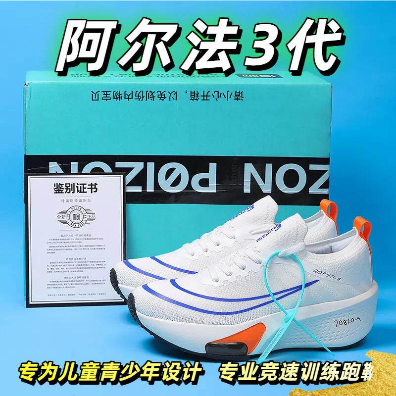 📚 阿尔法3代破2碳板跑步鞋儿童版男童夏季气垫软底小白鞋女跑鞋中考