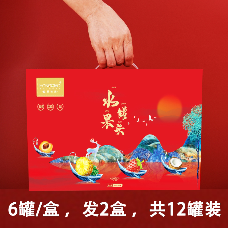 📚 新年礼盒装新鲜水果砀山特产糖水黄桃罐头425g*6罐手提年货礼品装