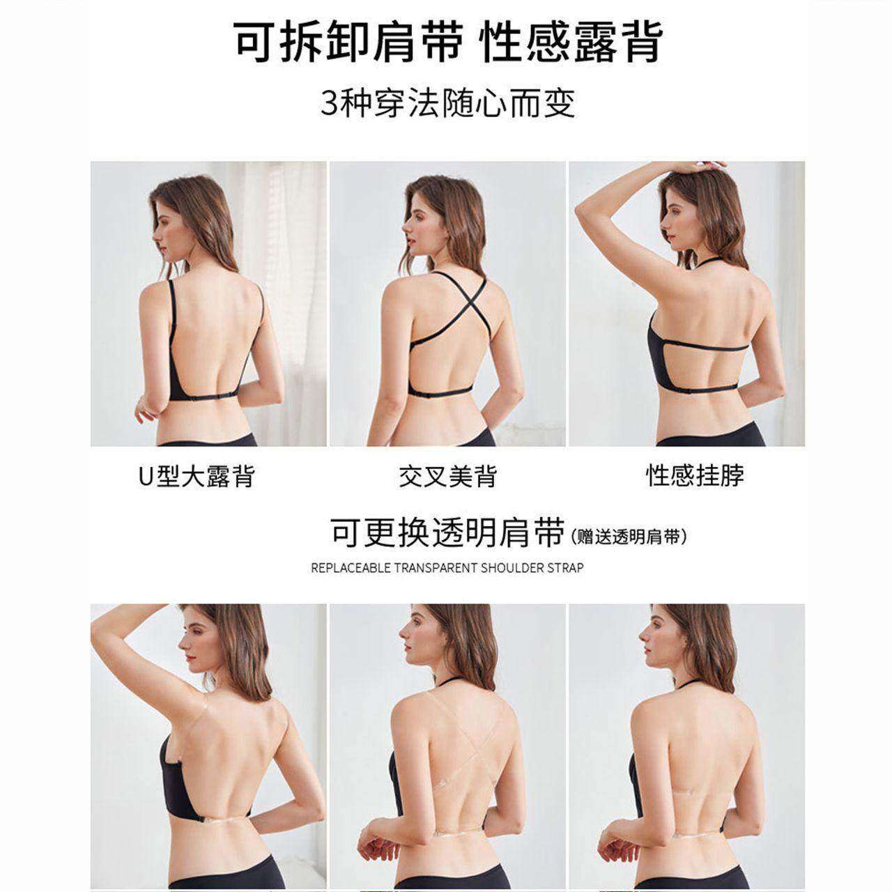 📚 晚礼服内衣後背隐形无痕u型美背小胸聚拢婚纱露背装专用薄款文胸