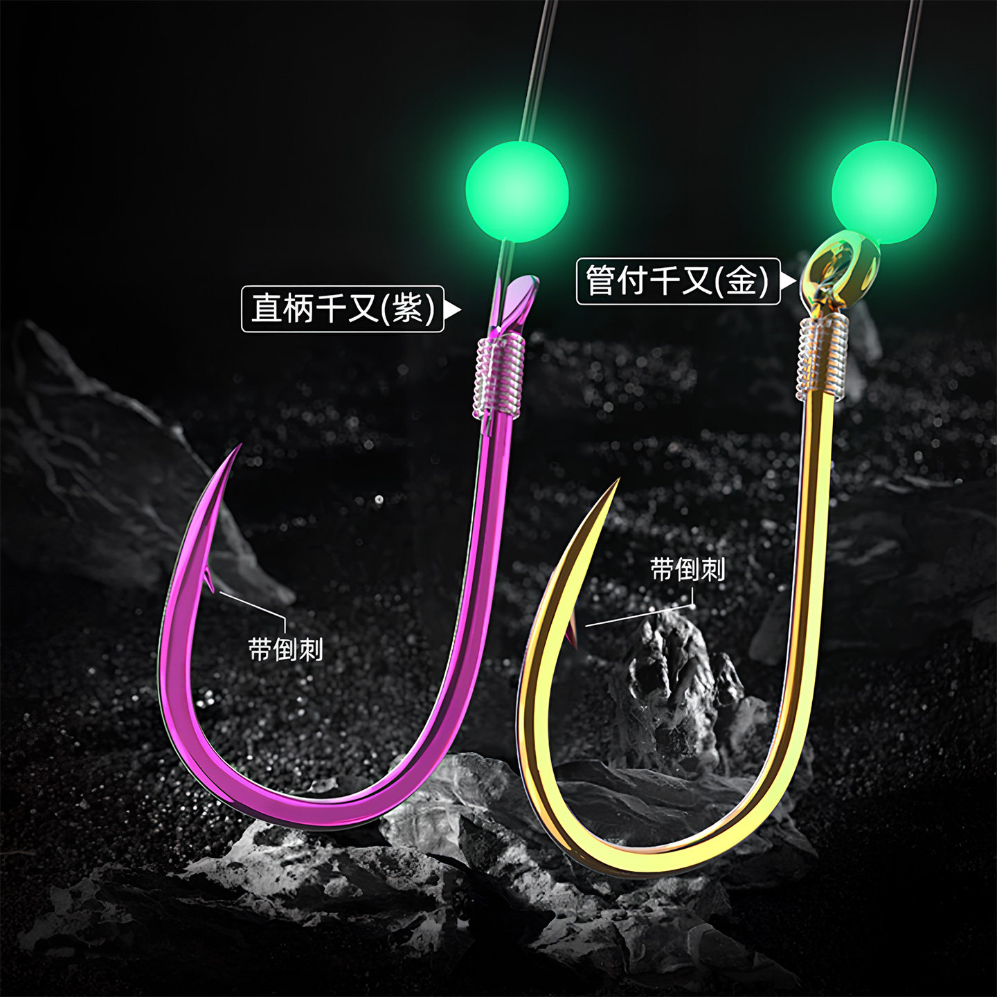 📚 海钓串钩钓组防缠绕线组3钩BKK钩进口碳线绑好夜光立鱼仕挂筏竿三