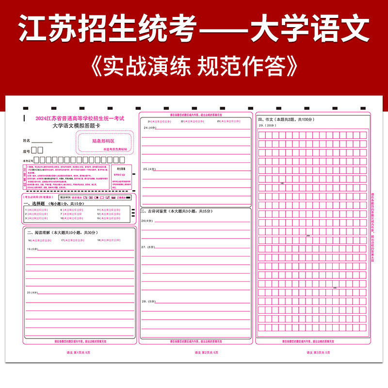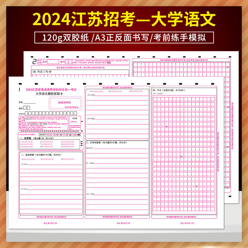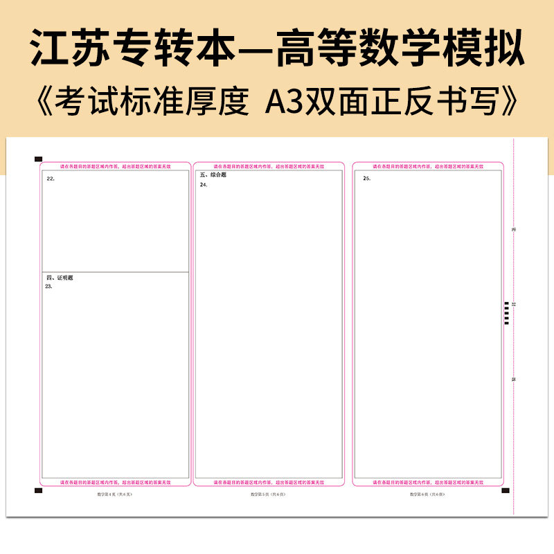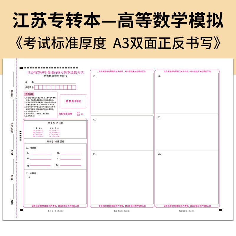 📚 2026年江苏专转本统-一入学考试高等数学默默学高数模拟卷考试答题卡/大学语文答题卡 A3 120克 正反面