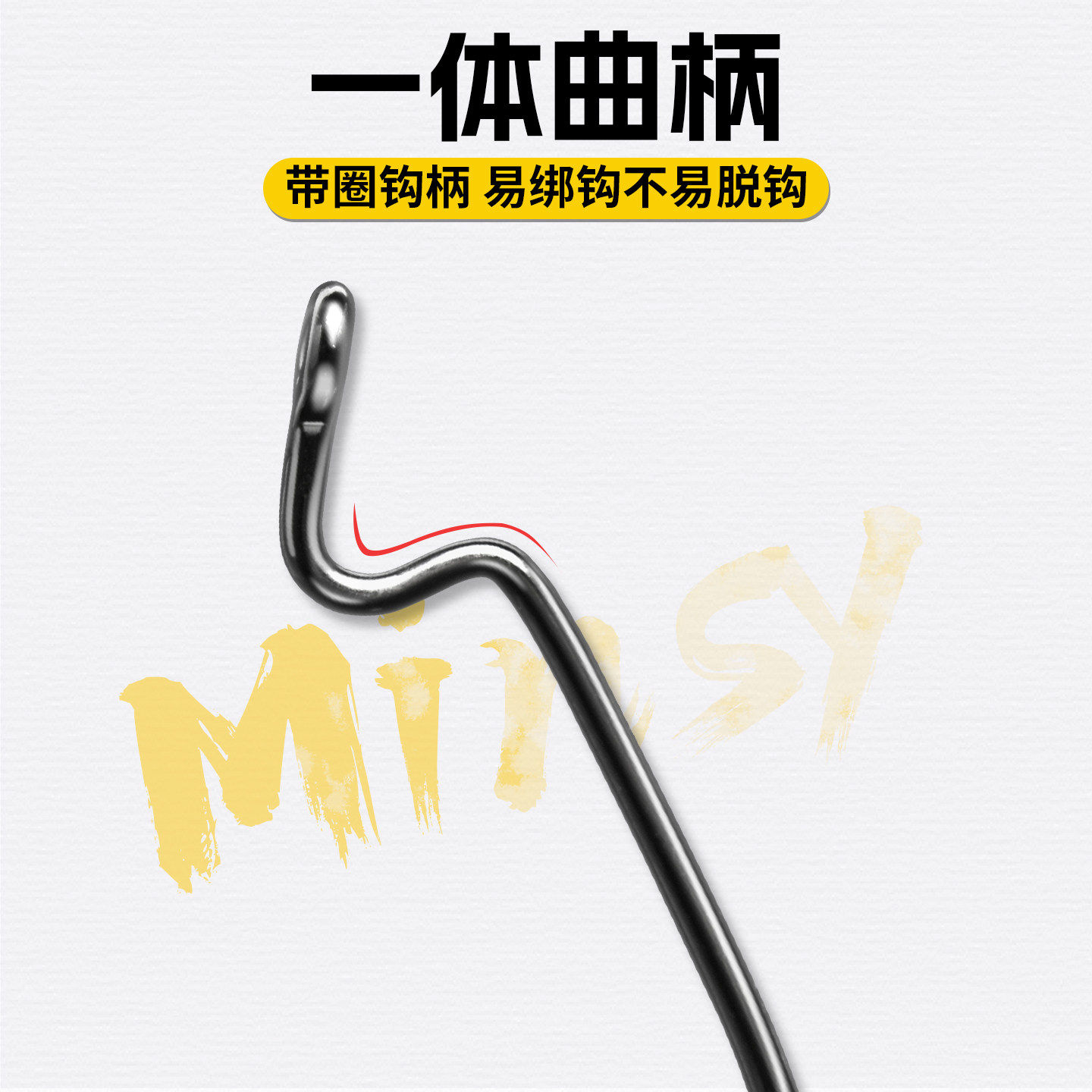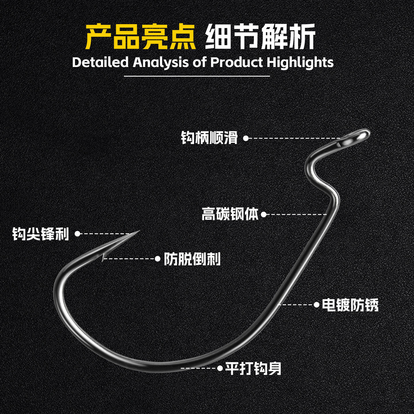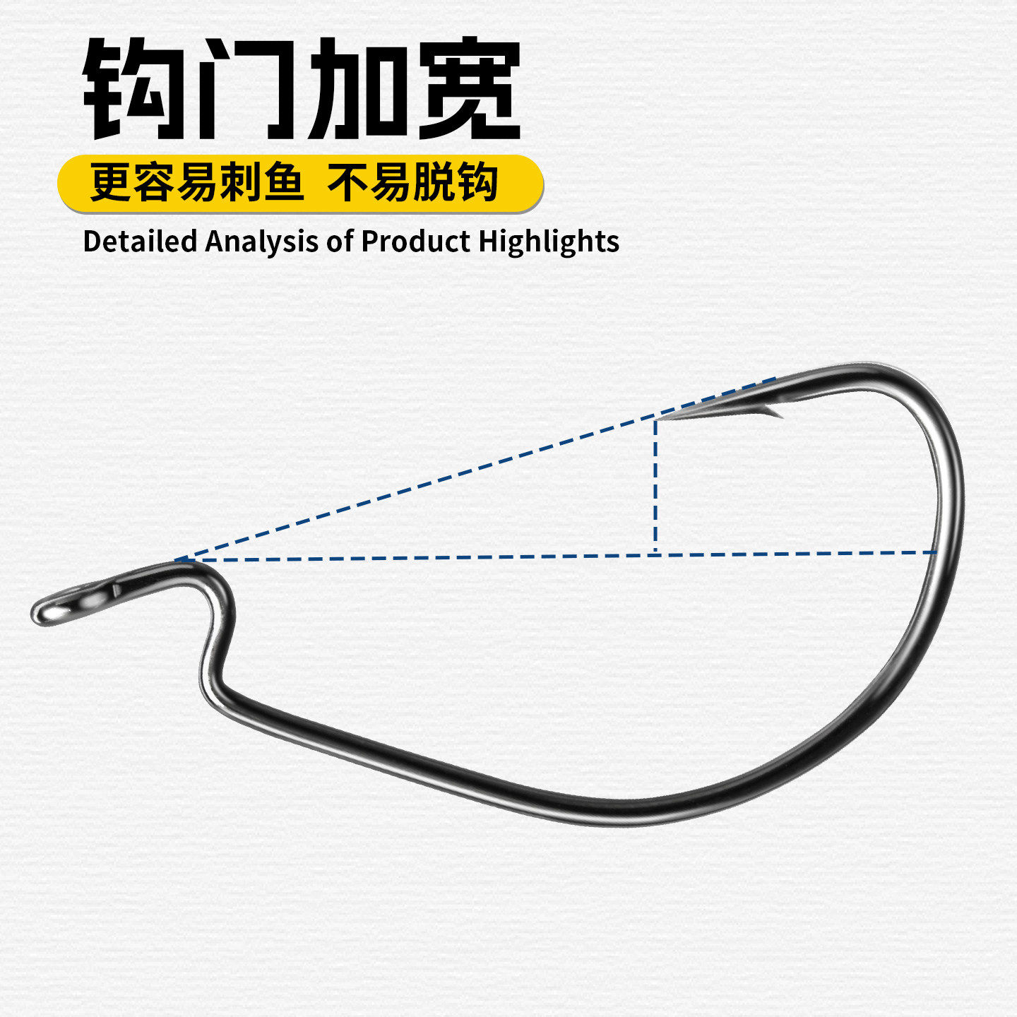 📚 名犀宽腹曲柄钩路亚加强钩t尾软饵套装德州钓组倒钓卡罗9003鱼钩