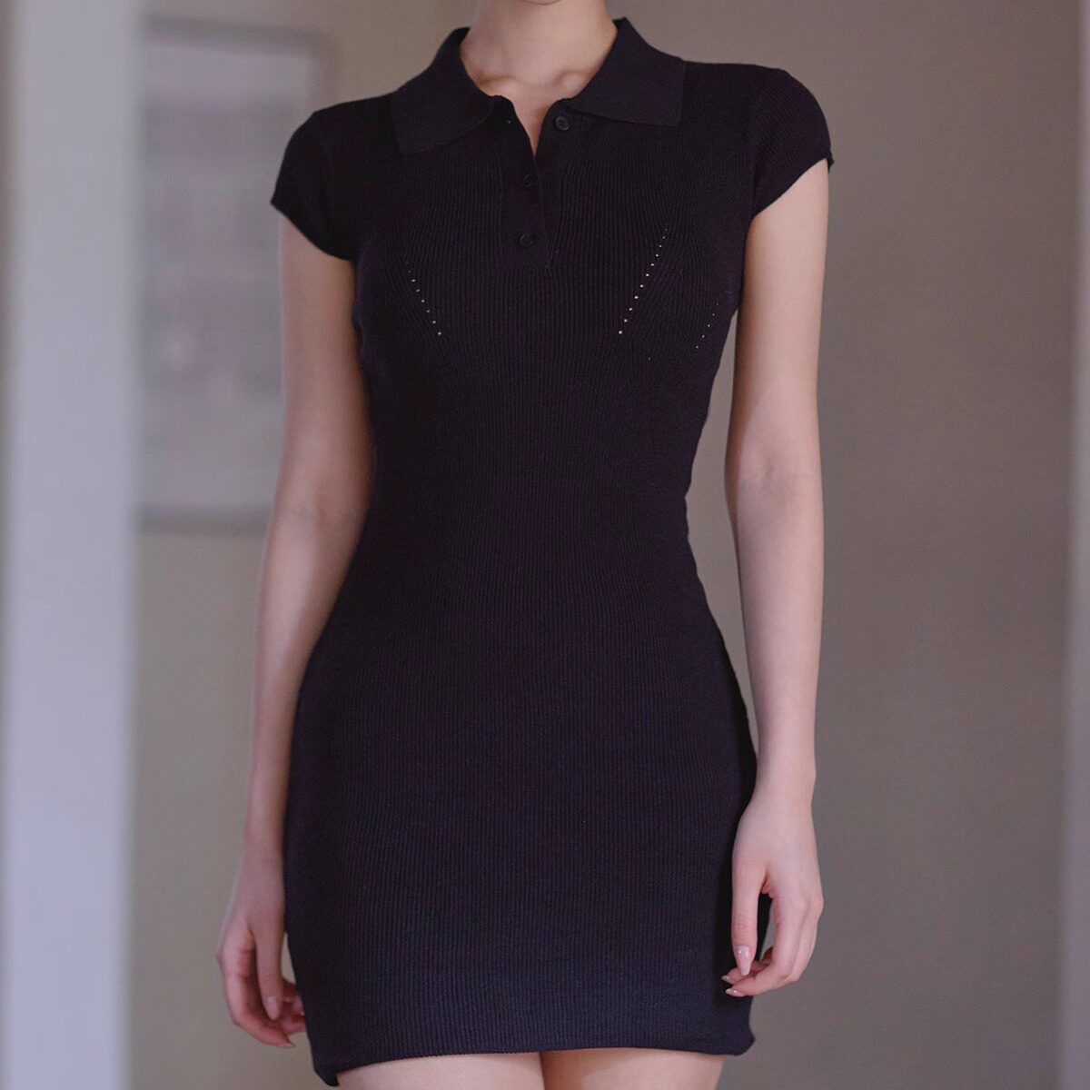 📚 kindame韩国张元英同款休闲纽扣衬衫竖纹针织短袖连衣裙KL25S2604