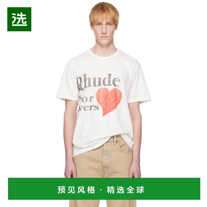 📚 1h可退 香港直邮Rhude 男士 白色 Slub Lovers T 恤 RHSS25TT2401