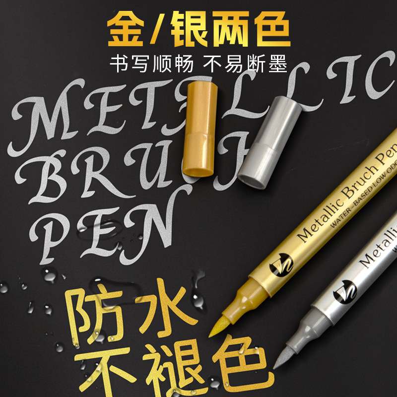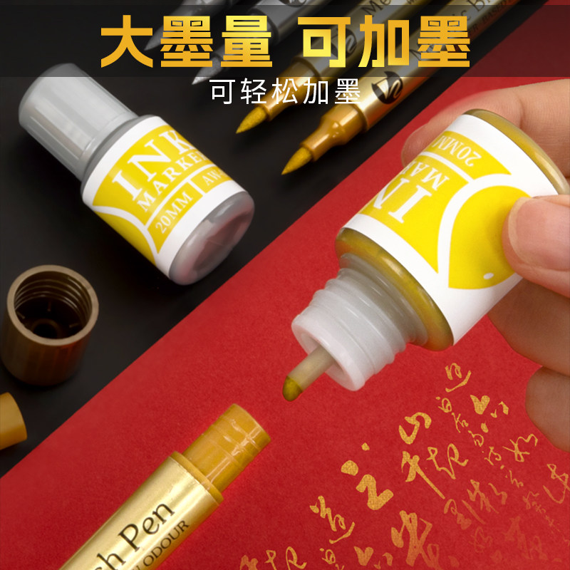 📚 金色秀丽笔美术软头笔烫金签字笔小楷抄经笔练字硬笔书法笔艺术笔自带笔锋钢笔式毛笔勾线笔婚礼喜字婚庆签名