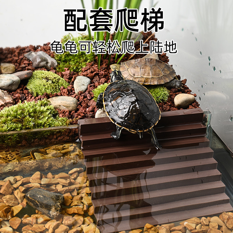 📚 乌龟饲养玻璃缸巴西草龟水陆两栖生态造景缸带盖子防逃底排水大型