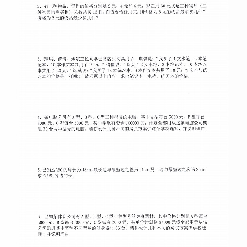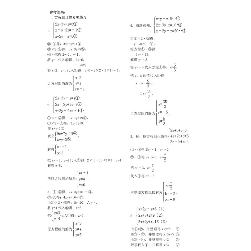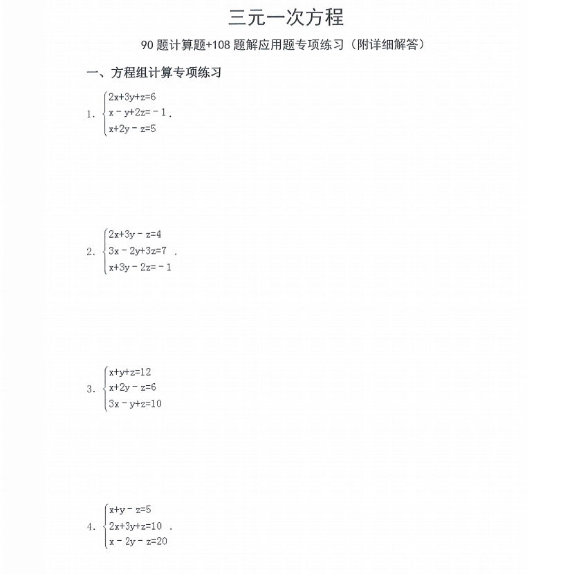 📚 七年级数学三元一次方程组计算解应用题专项常考题型训练习附解析
