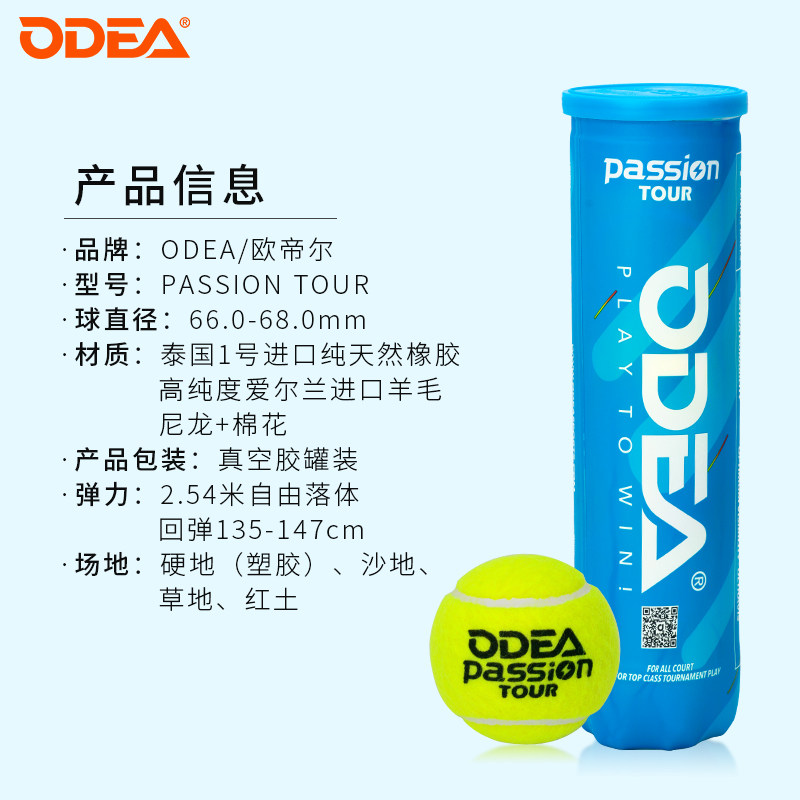 📚 Odear欧帝尔Passion网球比赛训练球高弹耐打耐磨气压足4粒罐装