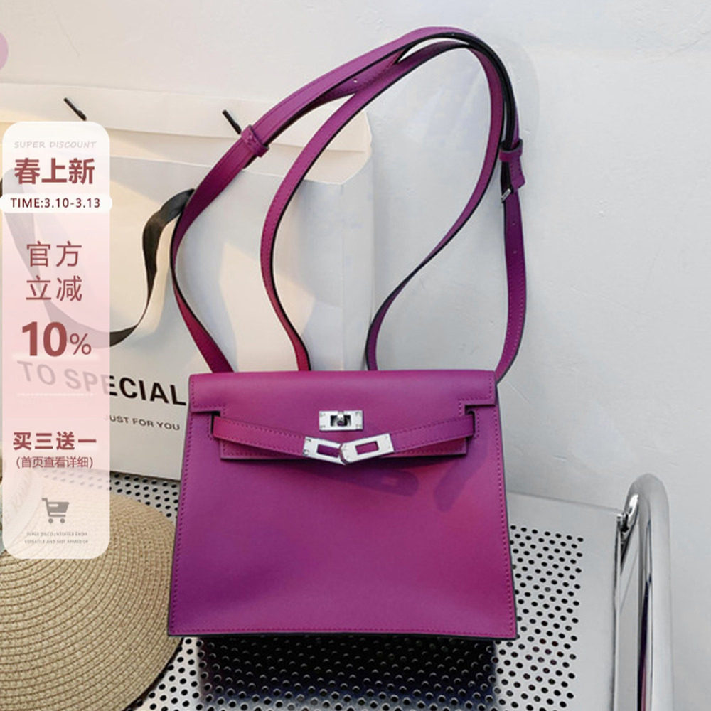 📚 跳舞包女高级感海葵紫色真皮小方包2026春夏单肩包时尚百搭双肩包