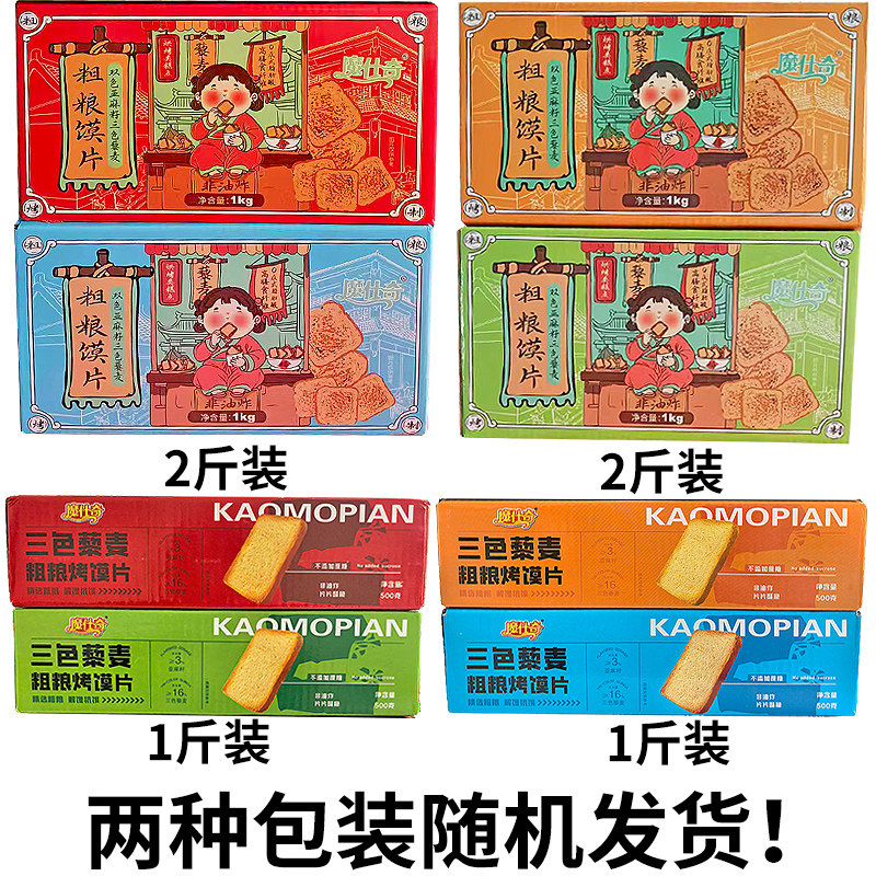 📚 三色藜麦粗粮烤馍片全麦早餐麻辣椒盐馒头片儿童解馋零食代餐整箱