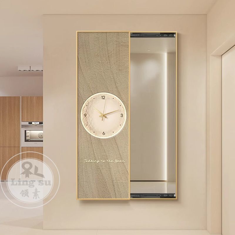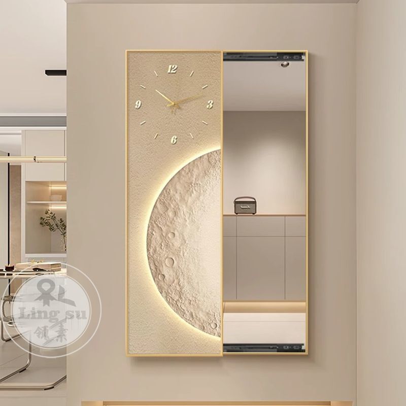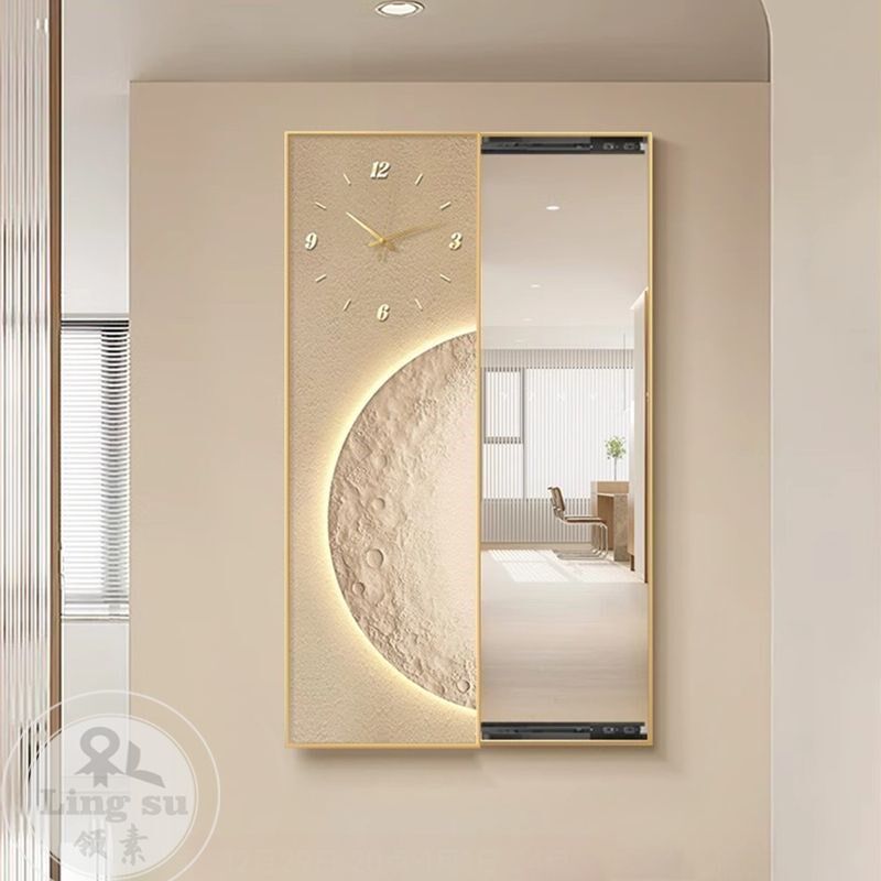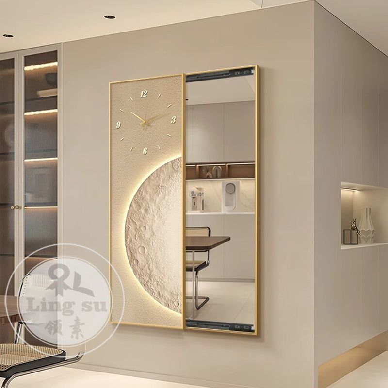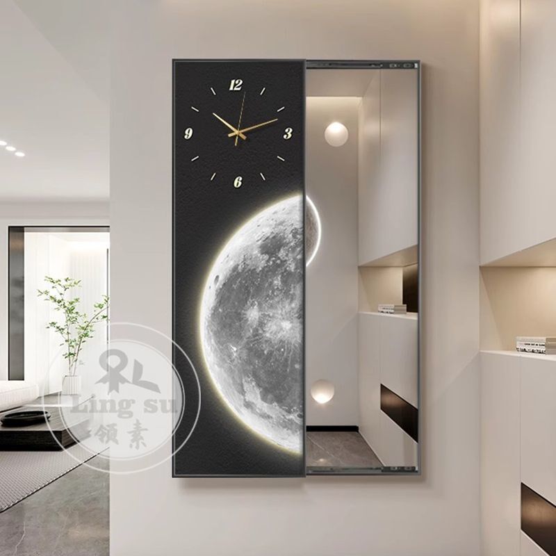 📚 隐形穿衣镜月球壁l画推拉隐藏式全身镜装饰画客厅镜子挂墙画带钟