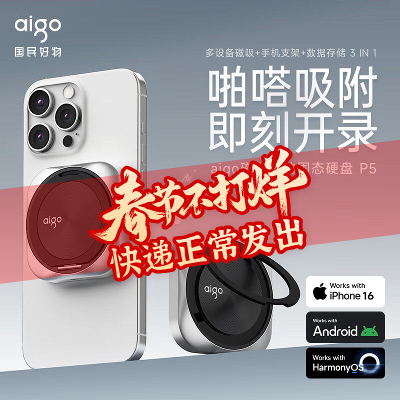 📚 爱国者P5磁吸手机移动固态硬盘1T2T大容量适用苹果外接移动硬盘4T