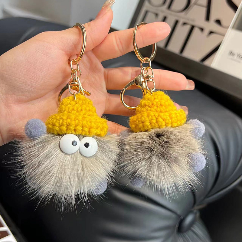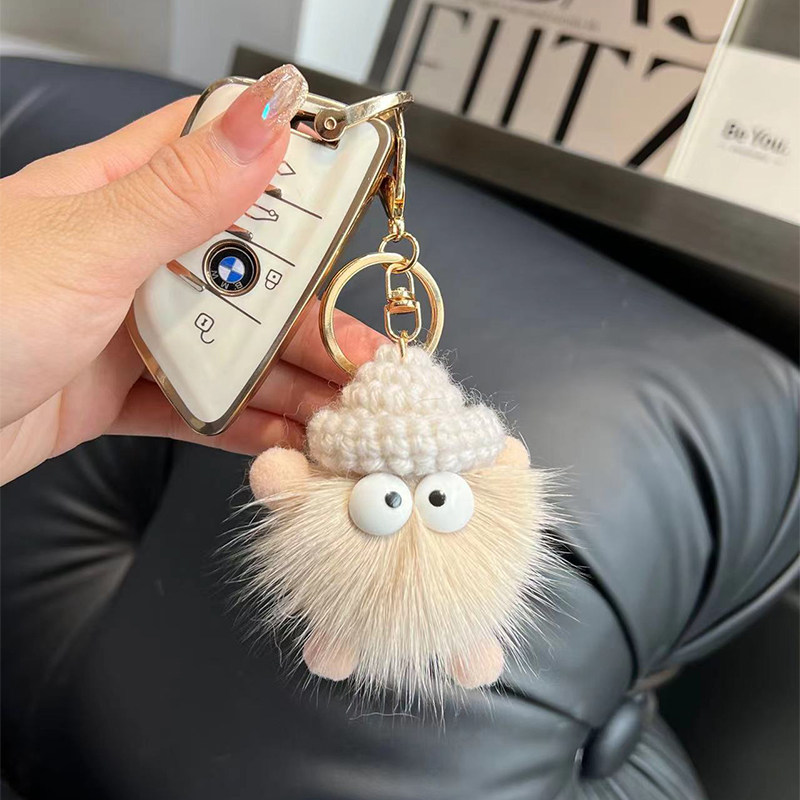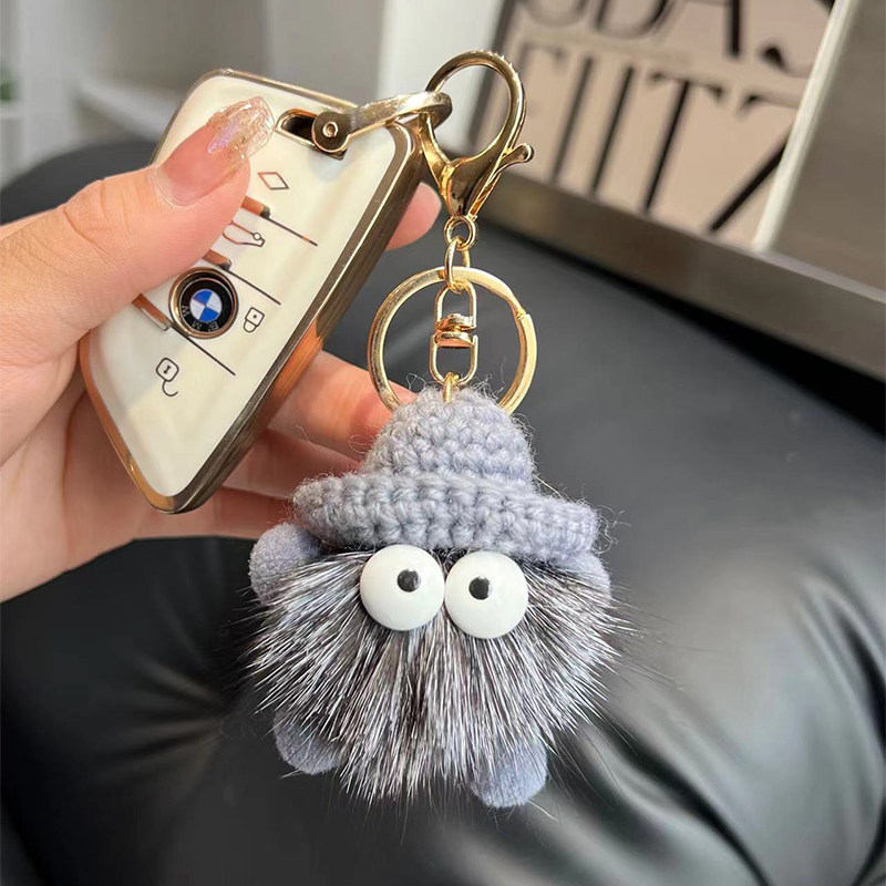 📚 可爱丑东西小煤球汽车钥匙扣挂件卡通玩偶毛绒公仔情侣背包包挂饰