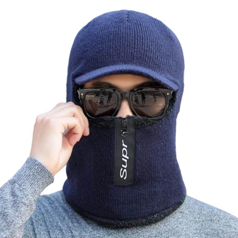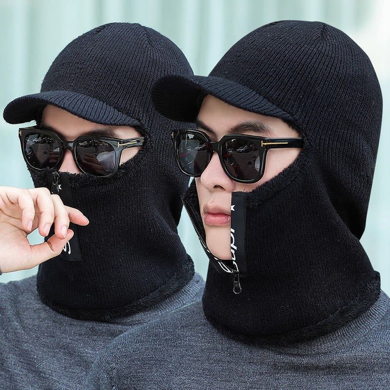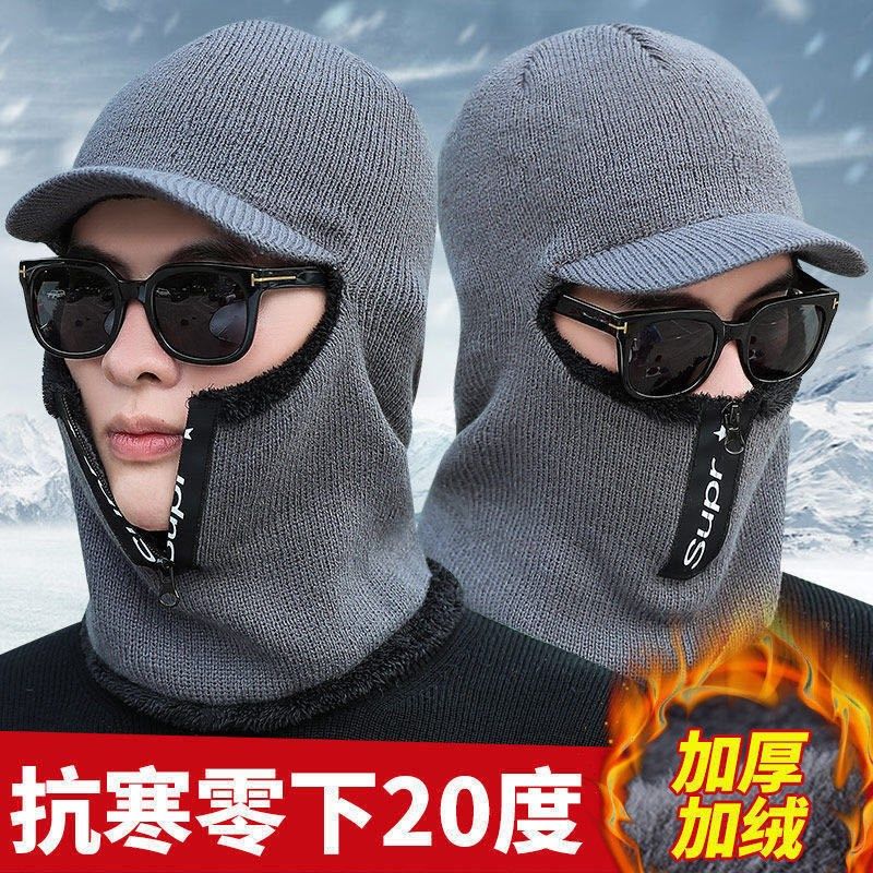 📚 钓鱼帽子冬季男冬天护耳加绒毛线帽围脖一体加厚骑行帽护颈连体帽