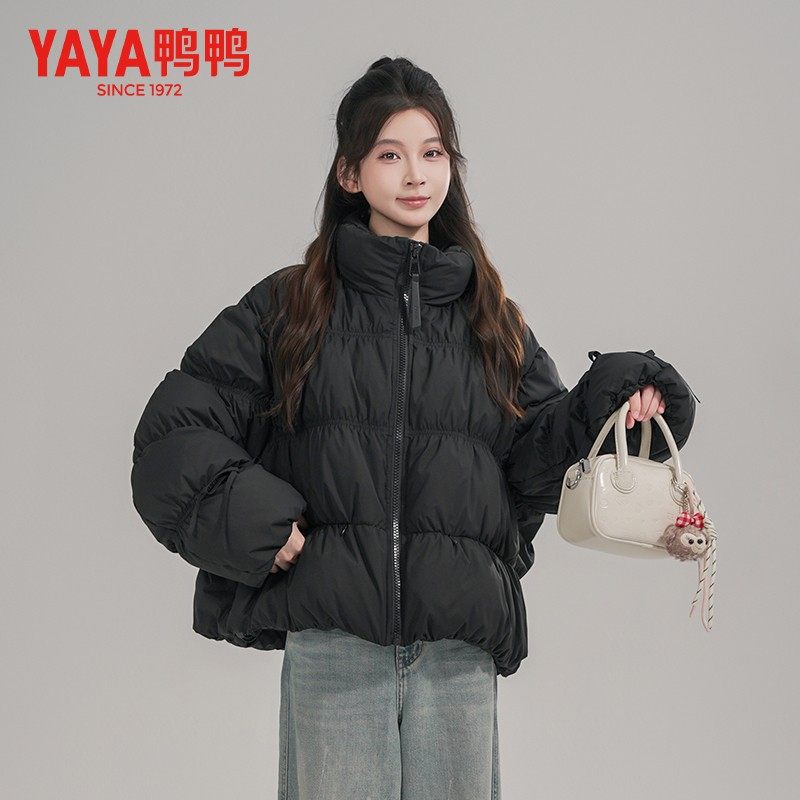 📚 鸭鸭短款立领羽绒服女2025新款黄色面包服小个子时尚宽松百搭外套